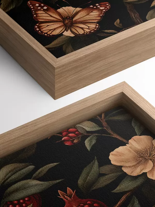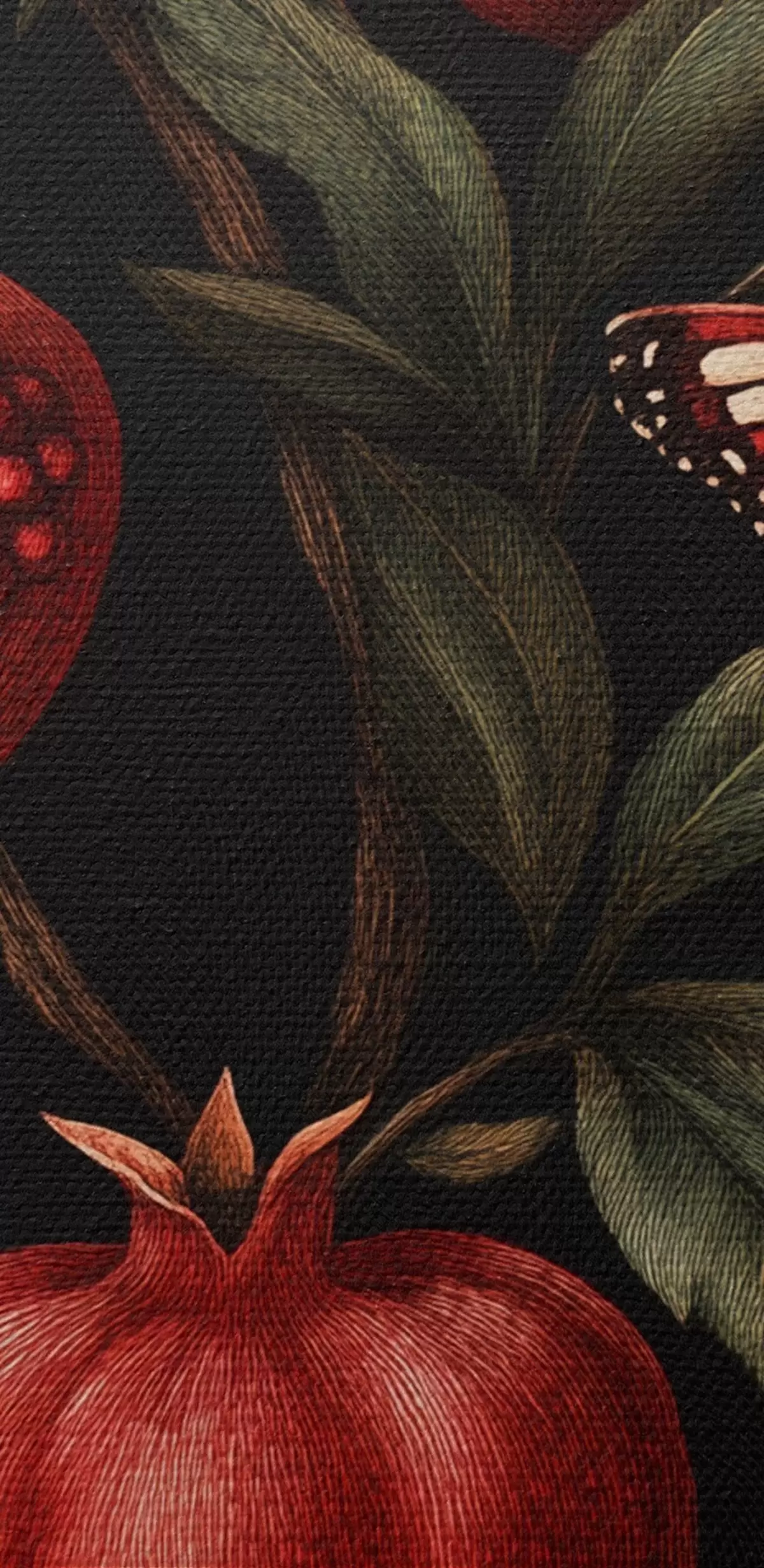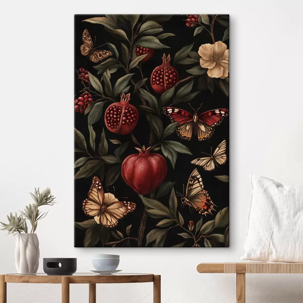 Pictură pe pânză Artă botanică cu rodii și fluturi Nr s44511
