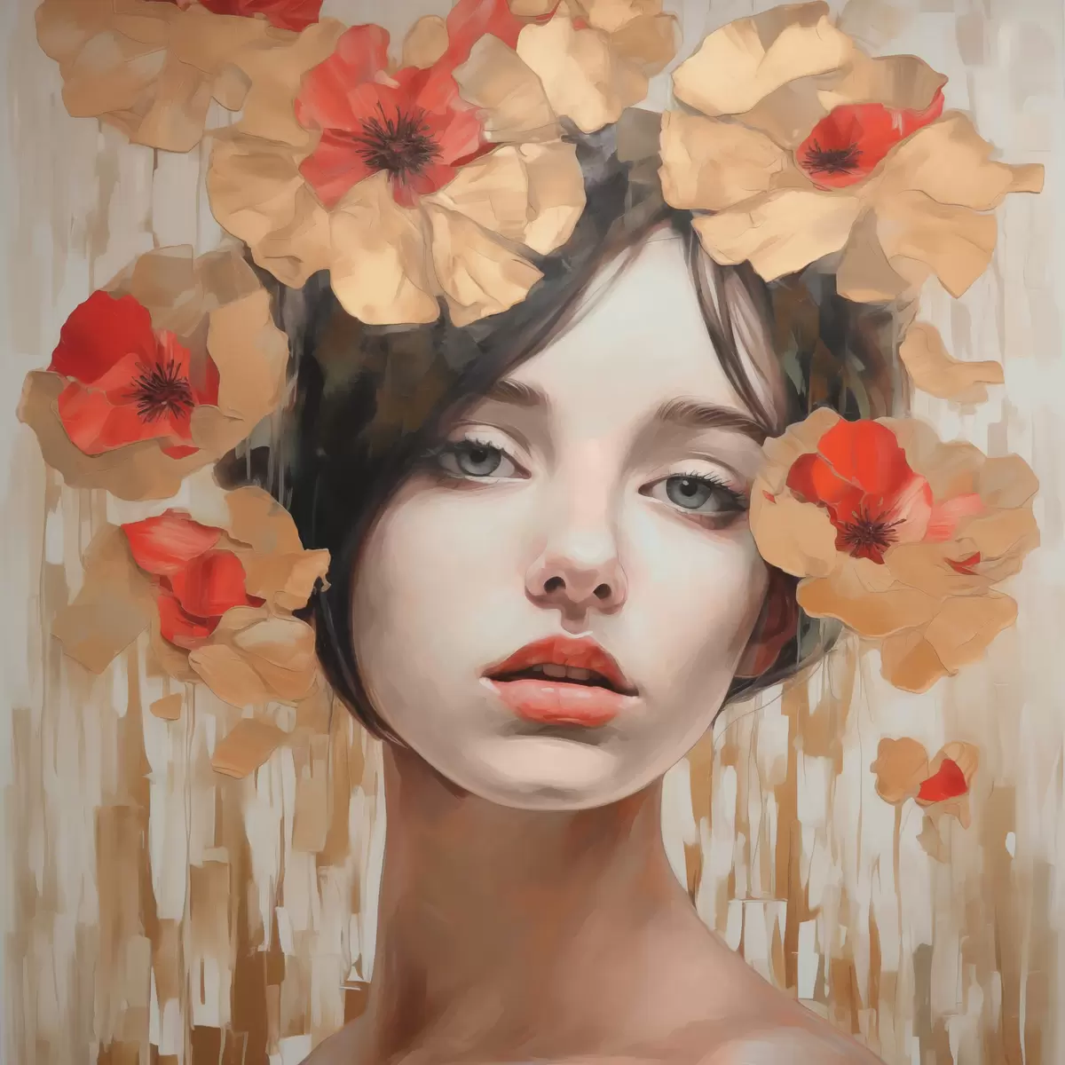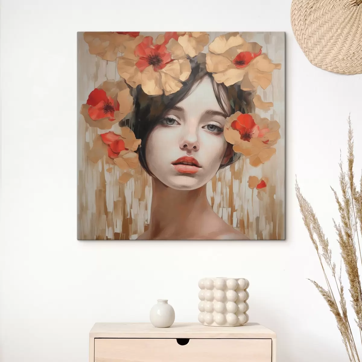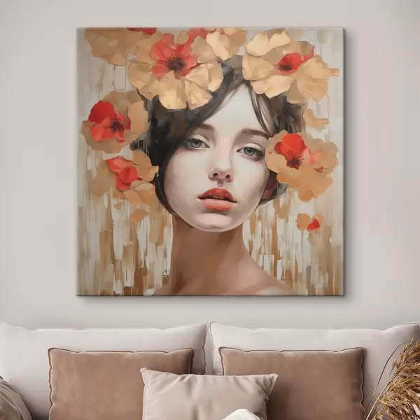 Pictură pe pânză Portret de fată cu flori Nr s44593