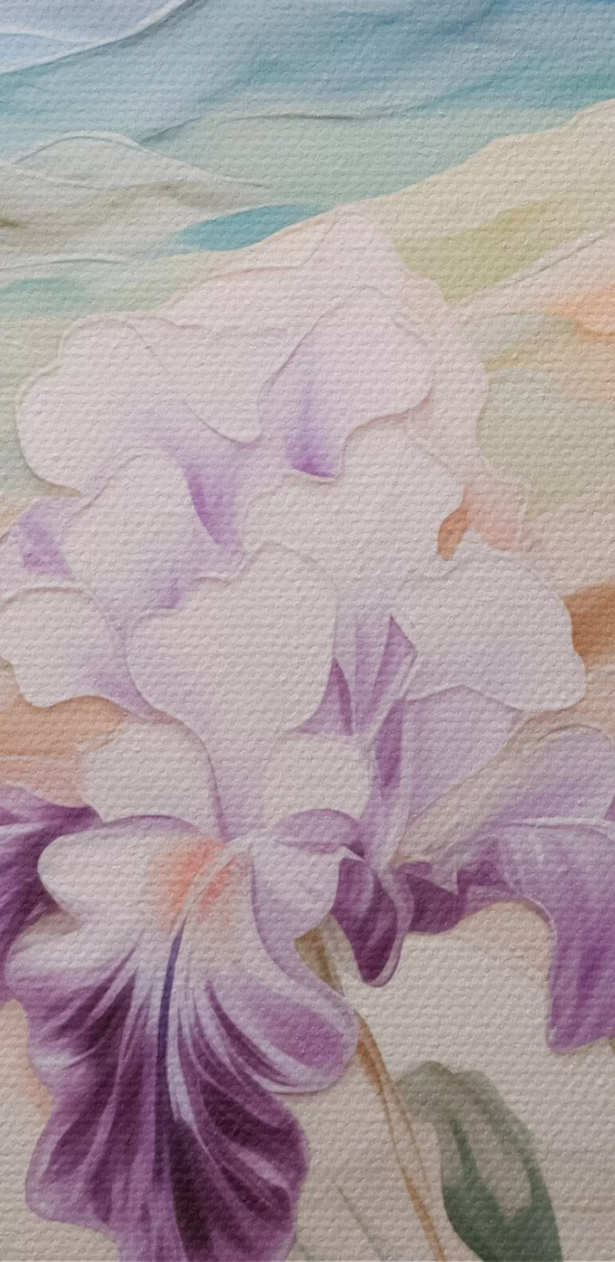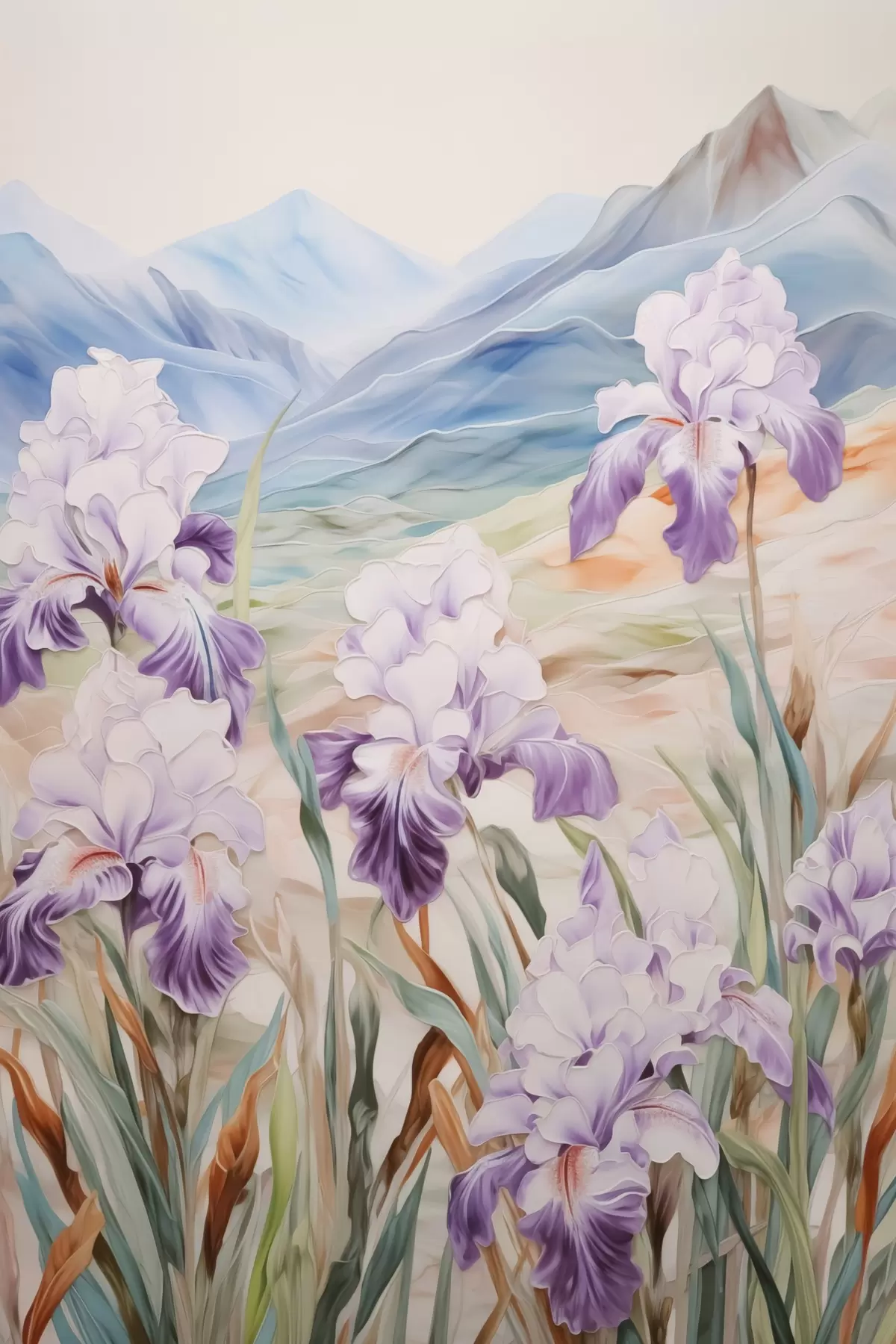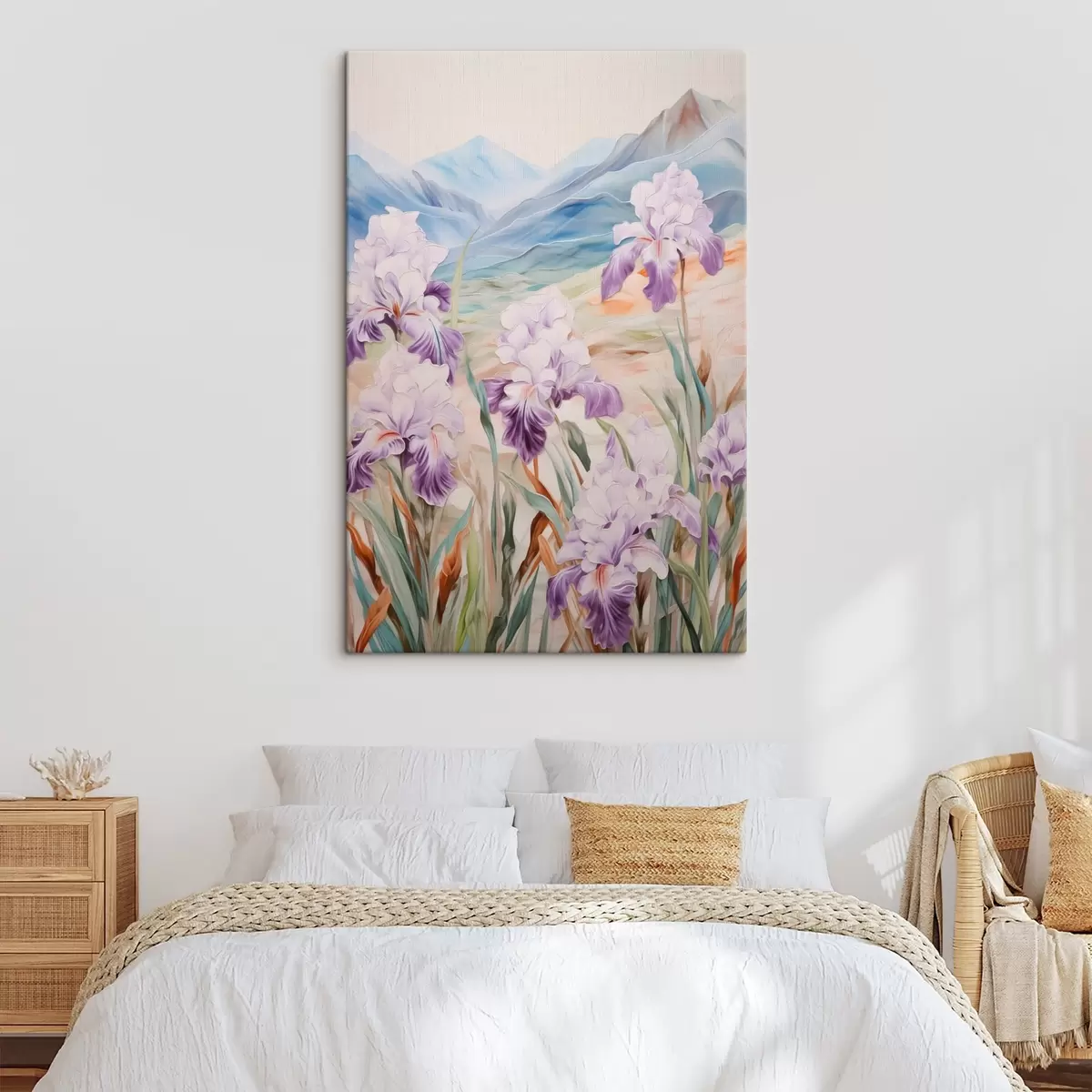 Pictură pe pânză Irisuri pe fundalul munților Nr s44599