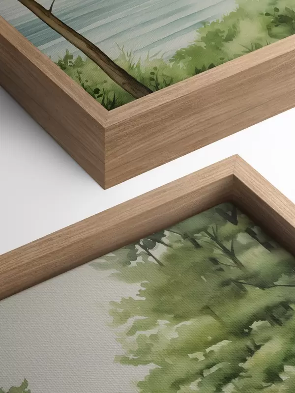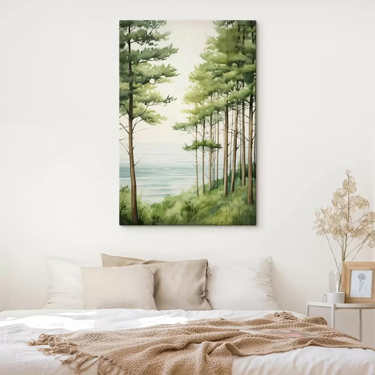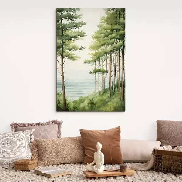 Pictură pe pânză Pădure de pin verde lângă mare, stil acuarelă Nr s44603