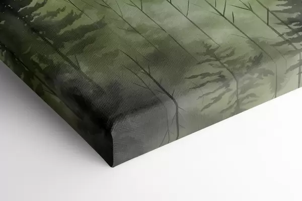 Pictură pe pânză Munți cu peisaj forestier, culori verzi, stil acuarelă Nr s44606
