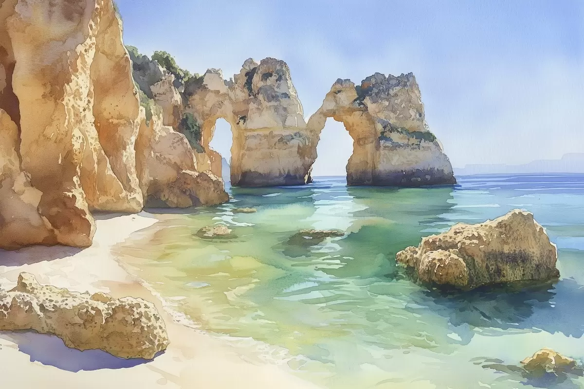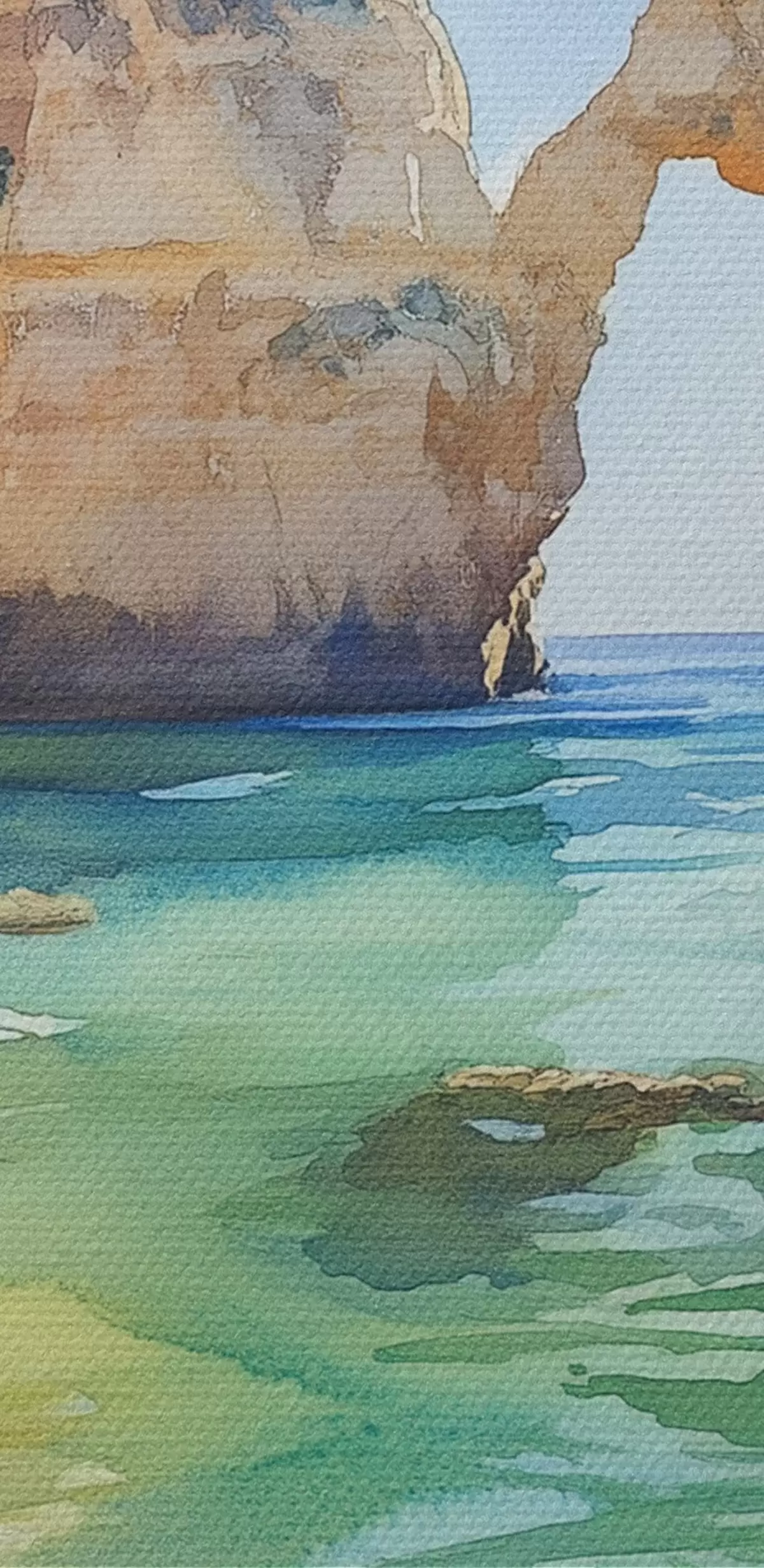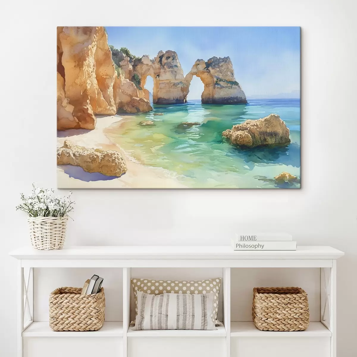 Pictură pe pânză Plajă oceanică cu stânci, Portugalia, vară, acvamarin Nr s44608