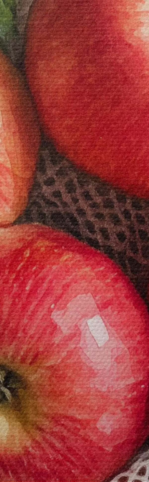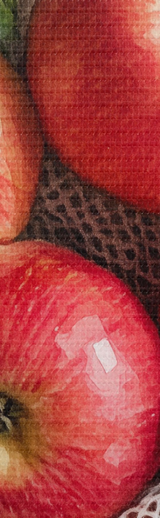 Pictură pe pânză Mere roșii în sac de in cu frunze de mentă, stil rustic, fructe Nr s44609