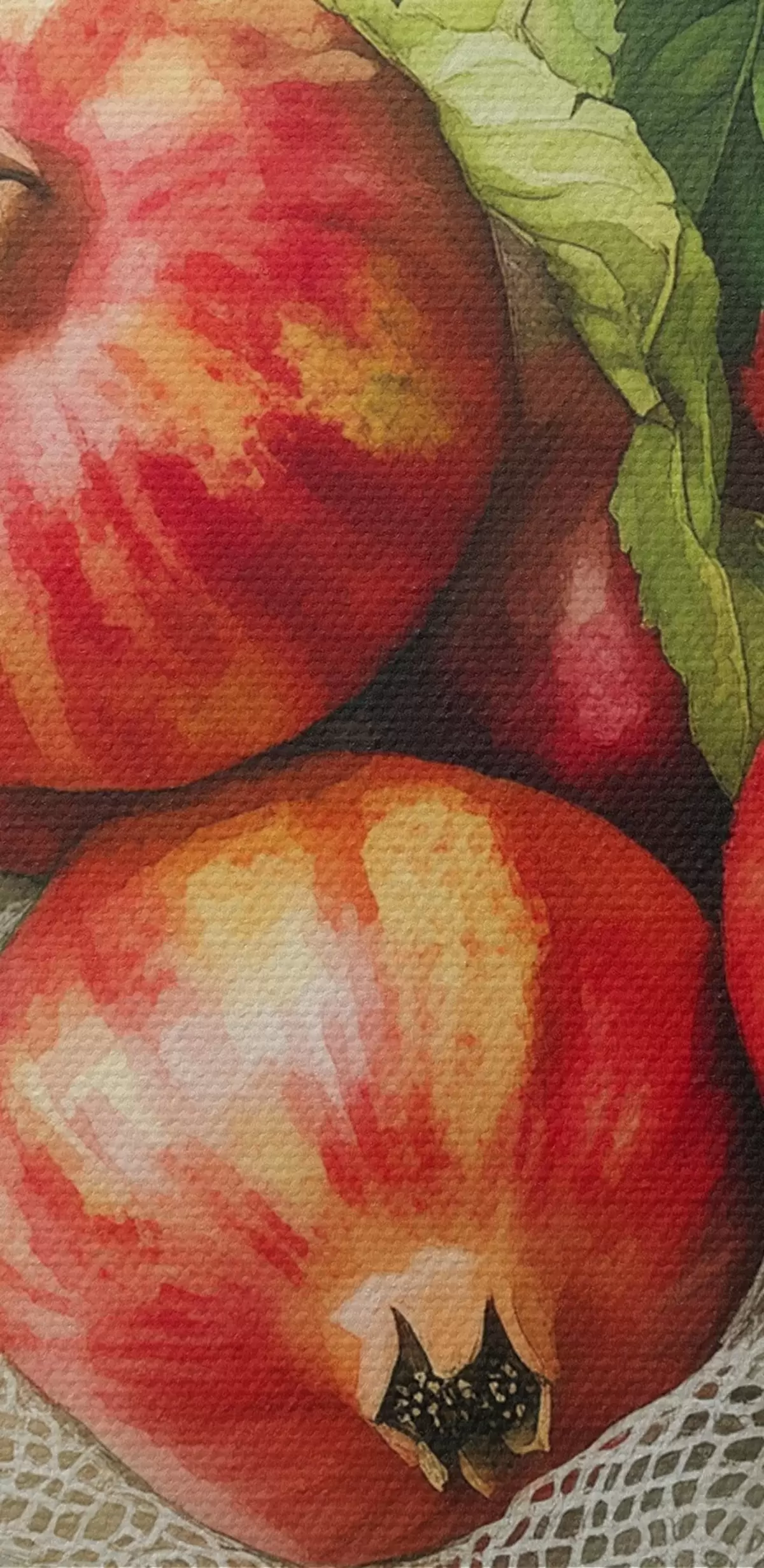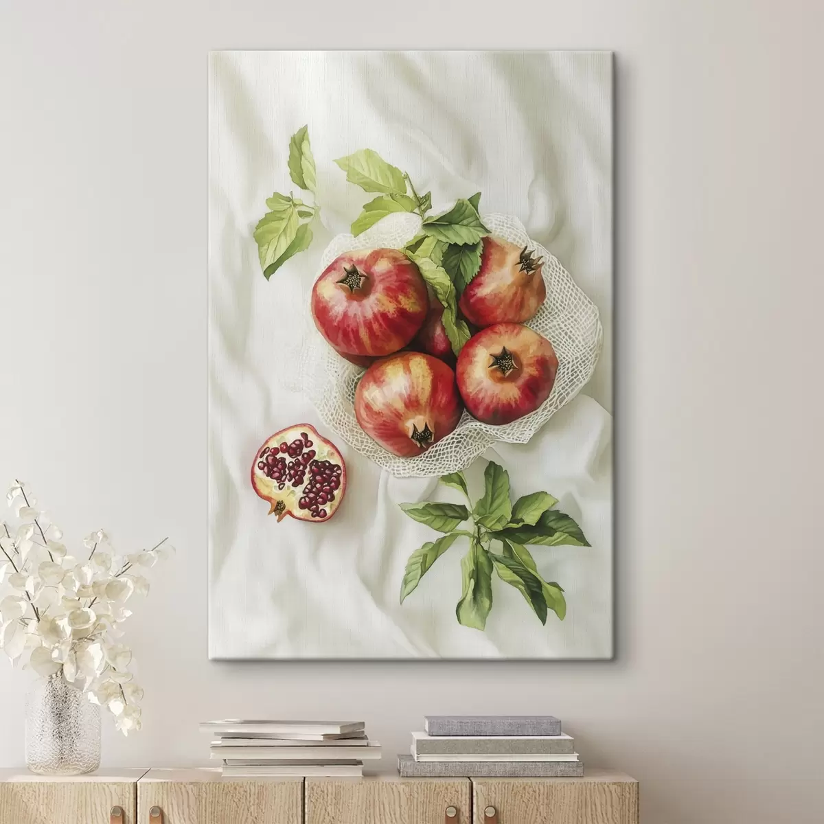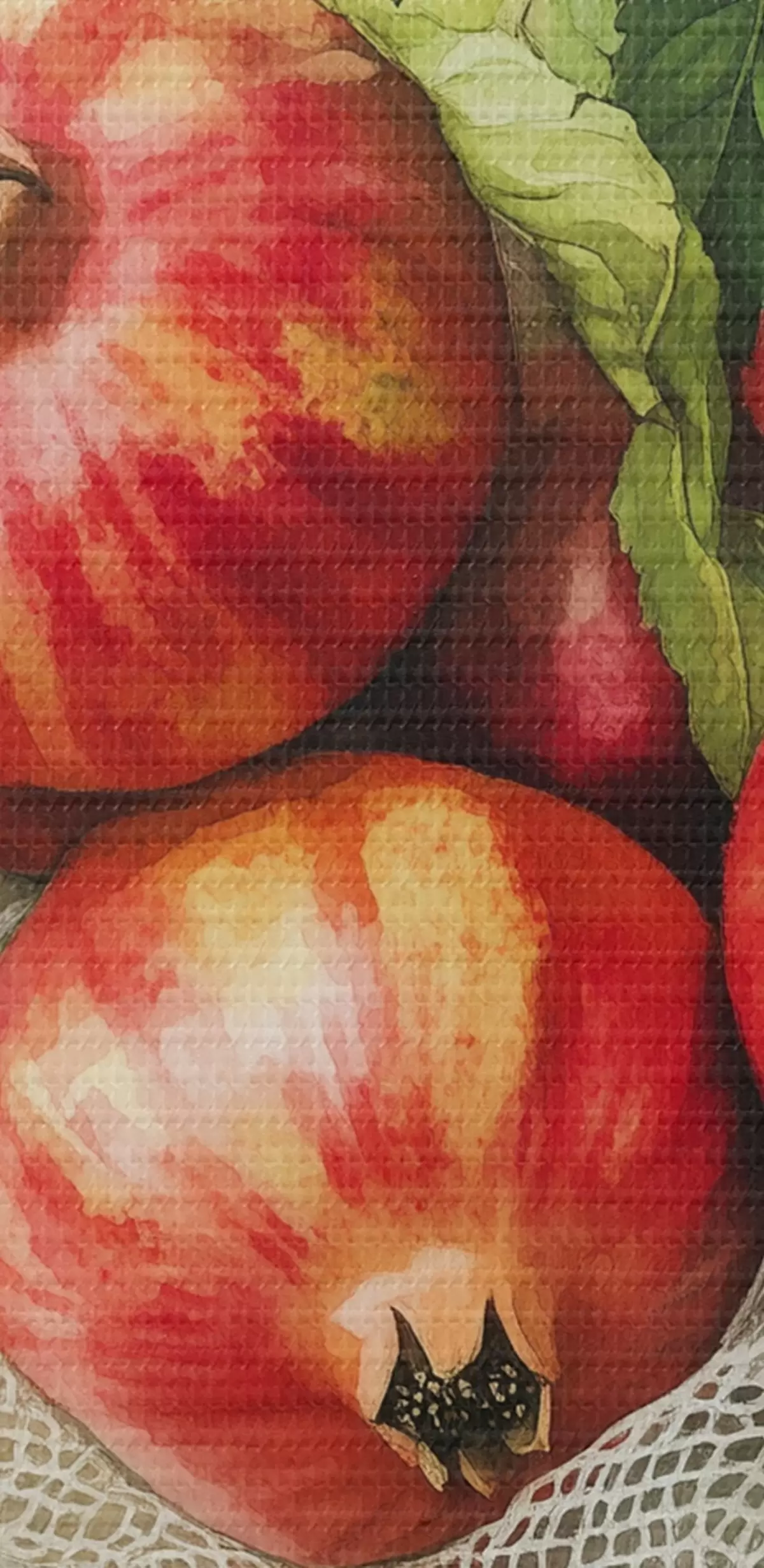 Pictură pe pânză Rodii cu frunze de mentă pe fețele de masă din in, stil rustic Nr s44611