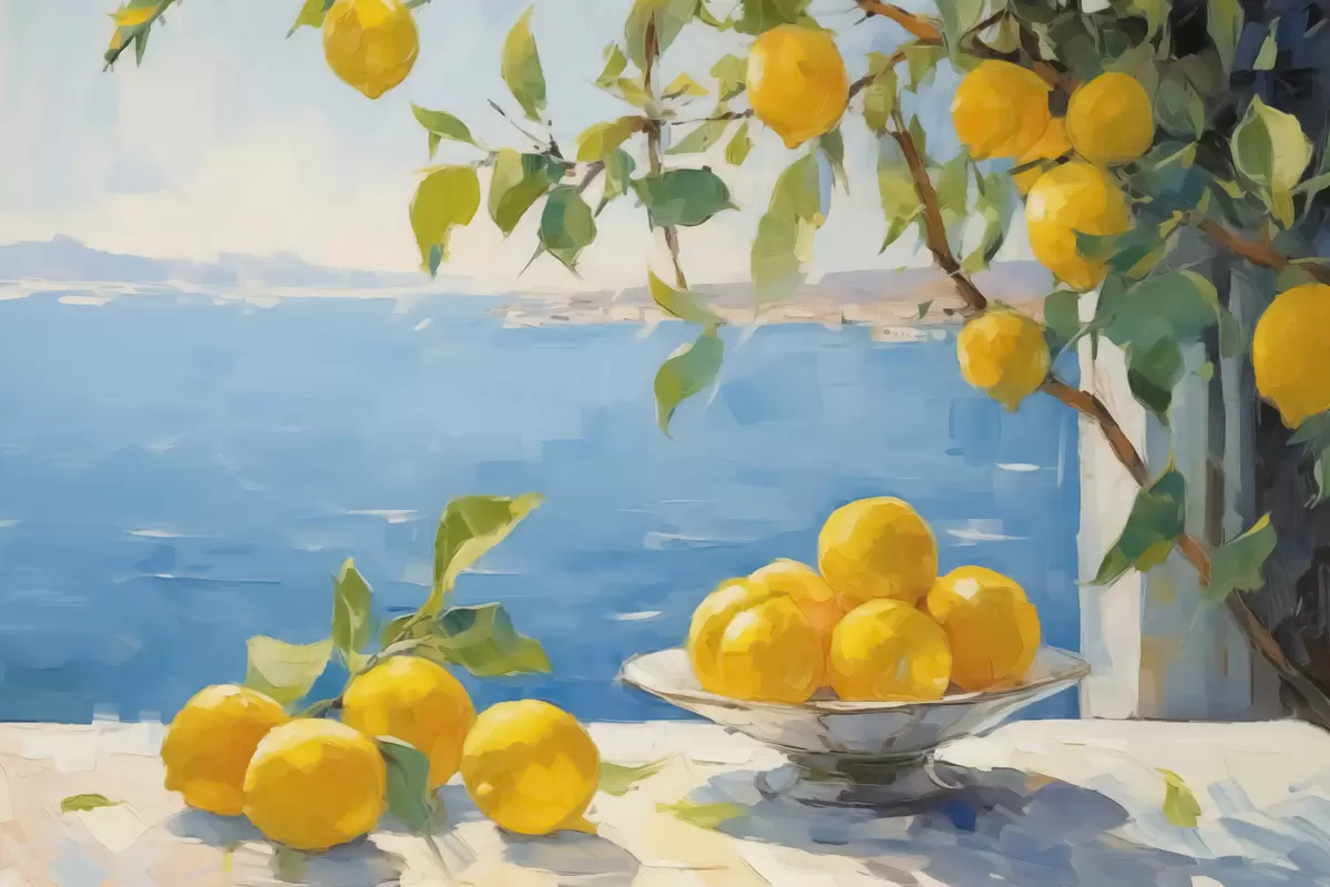 Pictură pe pânză Lămâi împotriva mării Nr s44649