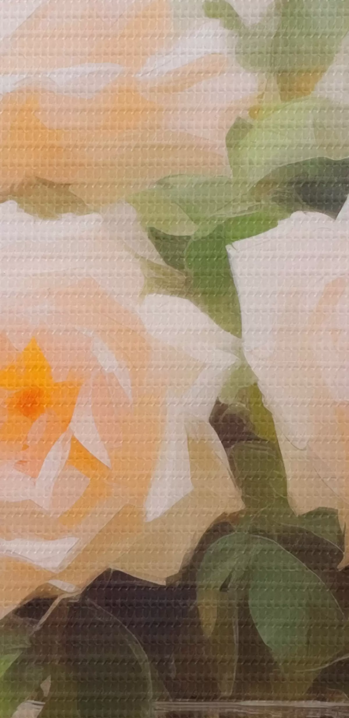 Țesătura fină a firelor de pe această pânză seamănă cu suprafața pânzelor artiștilor profesioniști.