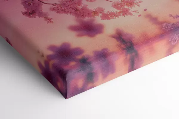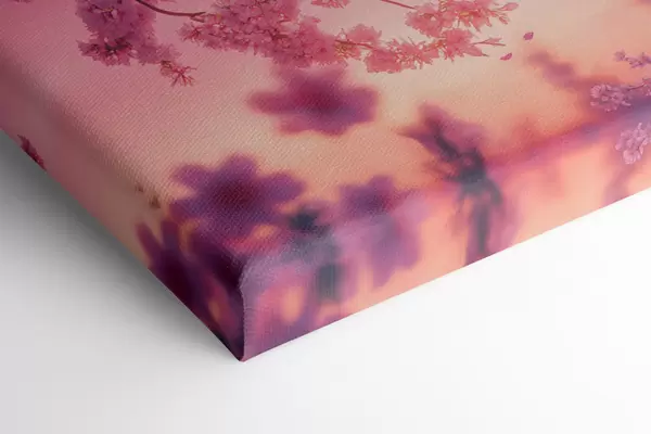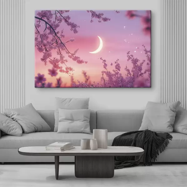 Pictură pe pânză Floare de cireș, cer roz cu lună strălucitoare, realism Nr s44715