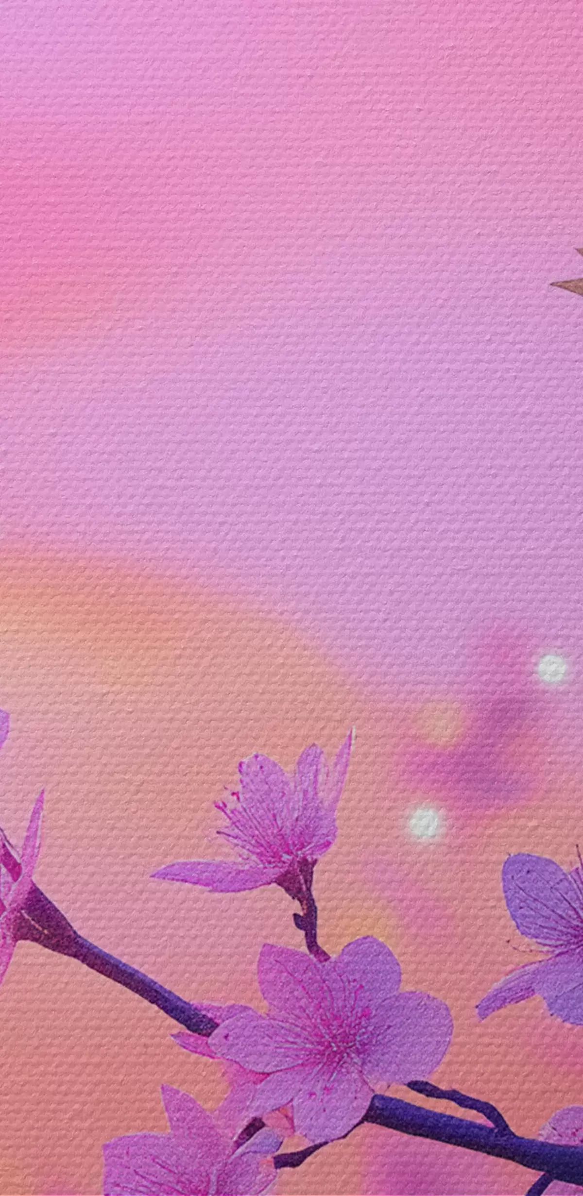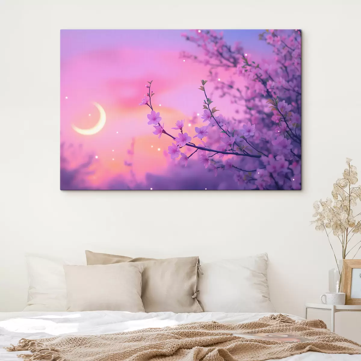 Pictură pe pânză Cer violet cu lună și cireși Nr s44717