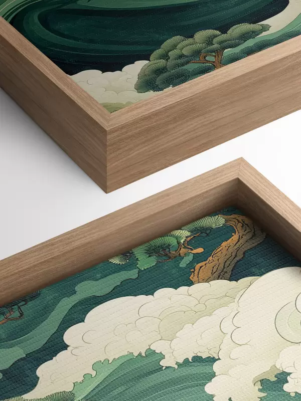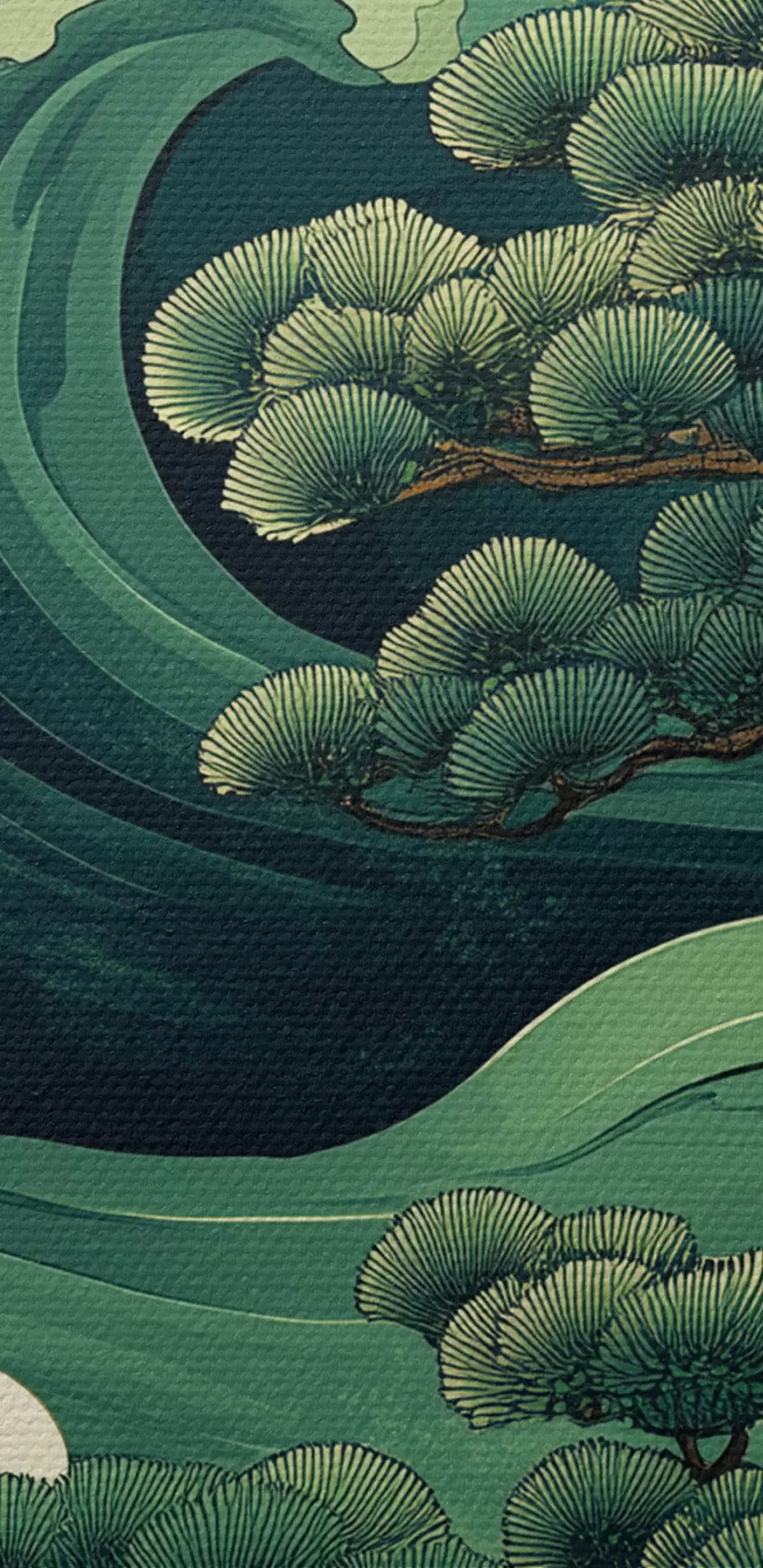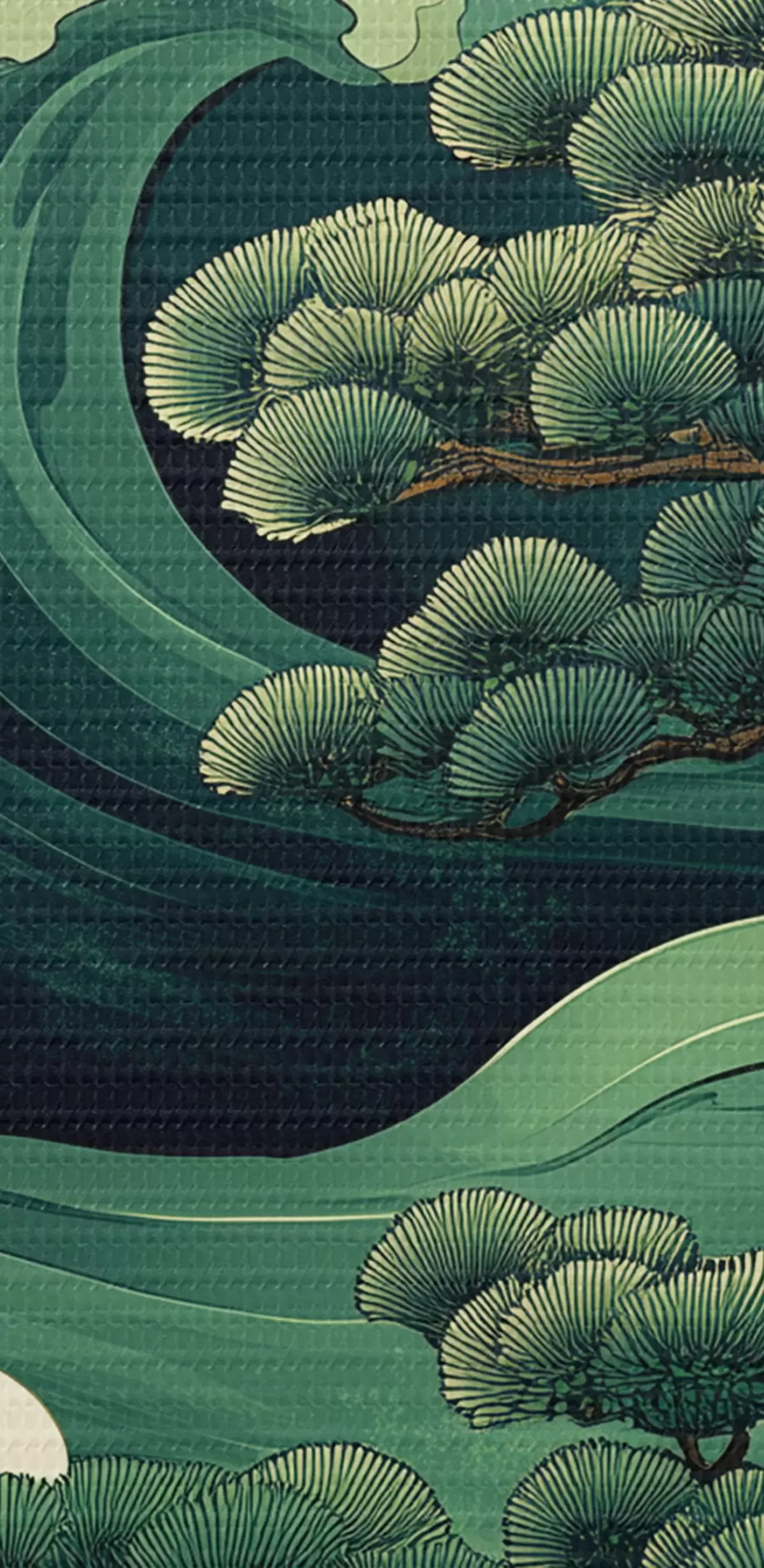 Tablouri Desen în stil chinezesc cu valuri de mare și pini s44719