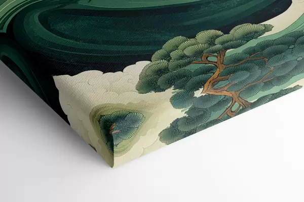 Pictură pe pânză Desen în stil chinezesc cu valuri de mare și pini Nr s44719
