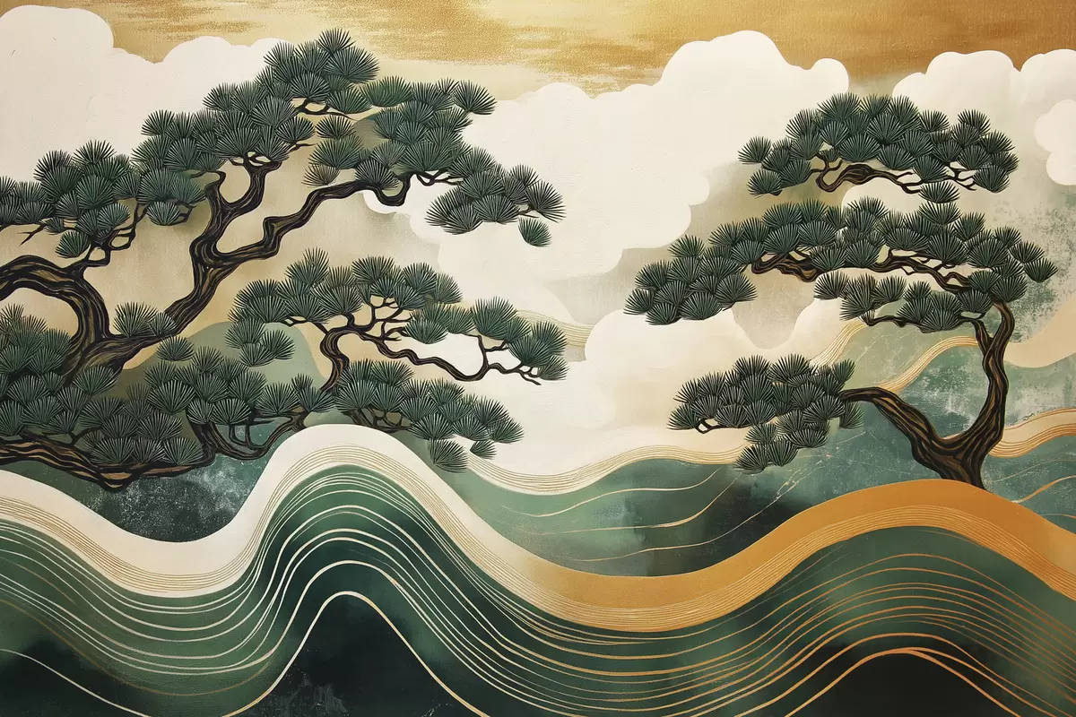 Pictură pe pânză Peisaje abstracte cu pini, stil chinezesc Nr s44720