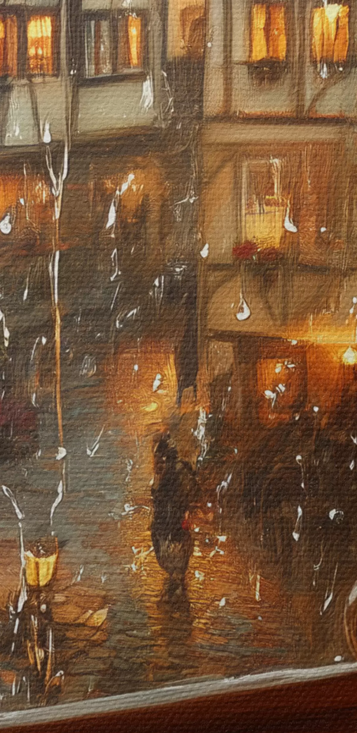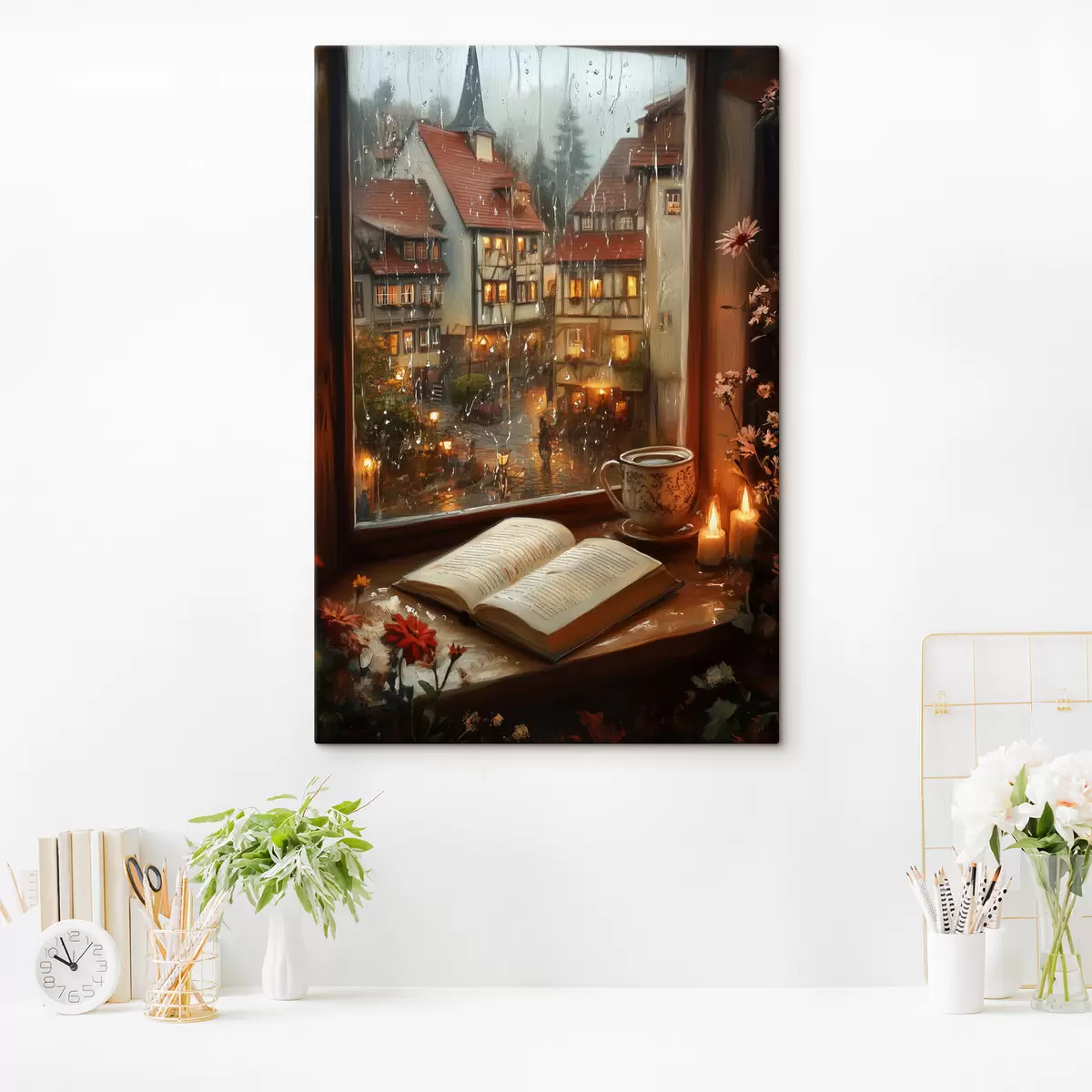 Pictură pe pânză Carte pe pervazul ferestrei, lumânări, zi ploioasă, confortabil Nr s44722