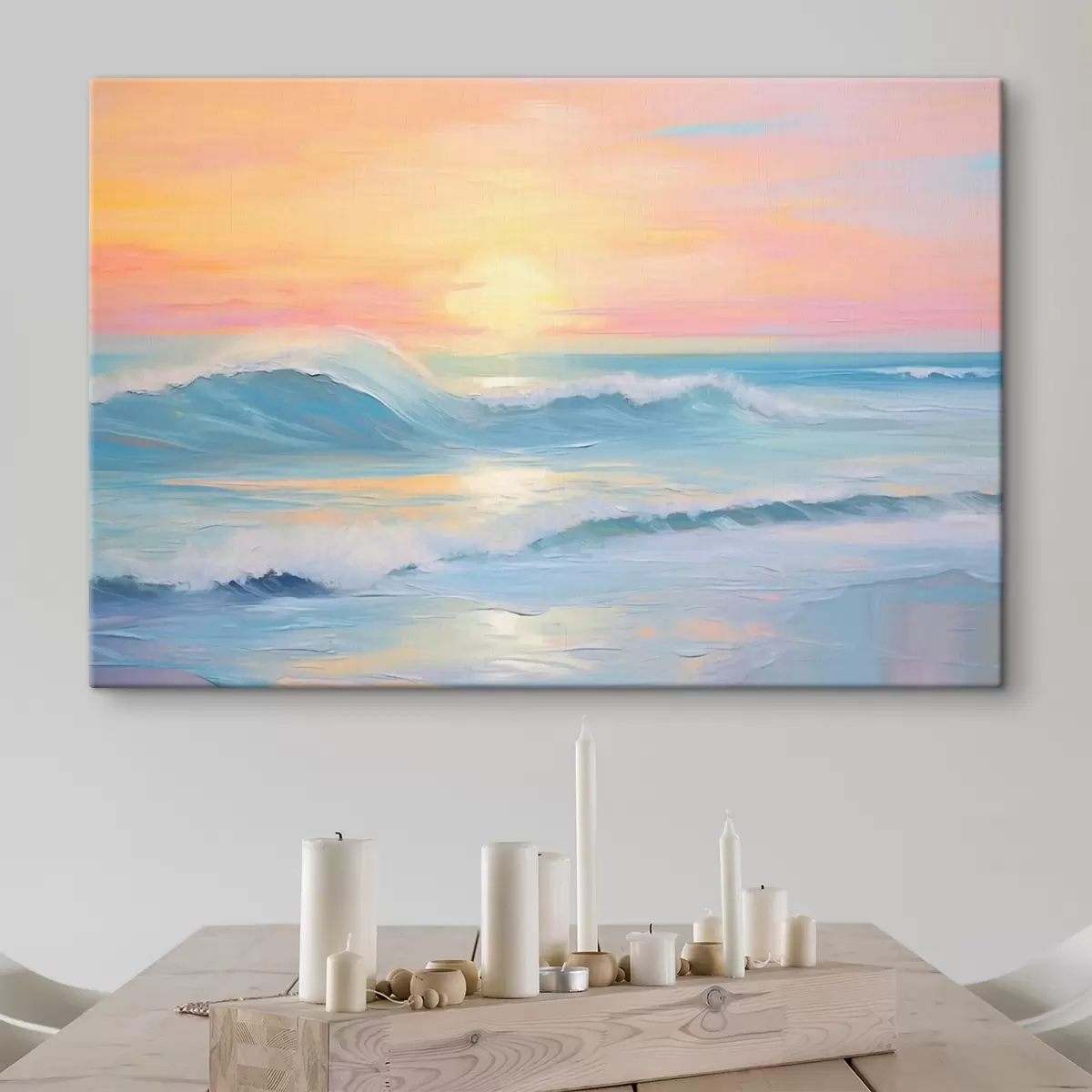 Pictură pe pânză Valuri de mare pe fundalul apusului de soare Nr s44729