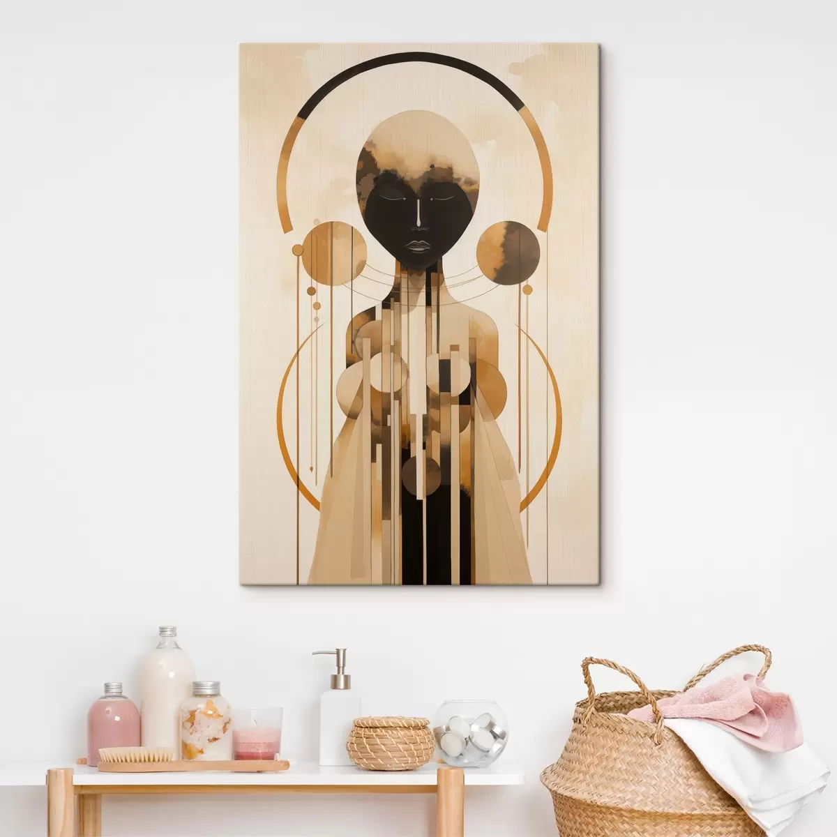 Pictură pe pânză Figura cu cercuri în paleta bej și maro Nr s44747