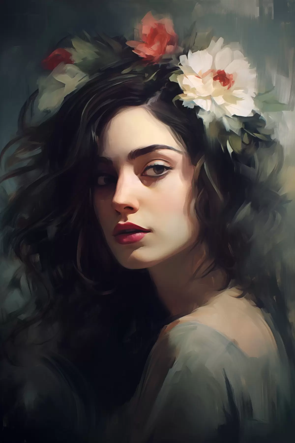Tablouri Femeie cu părul negru cu o coroană de flori s44762