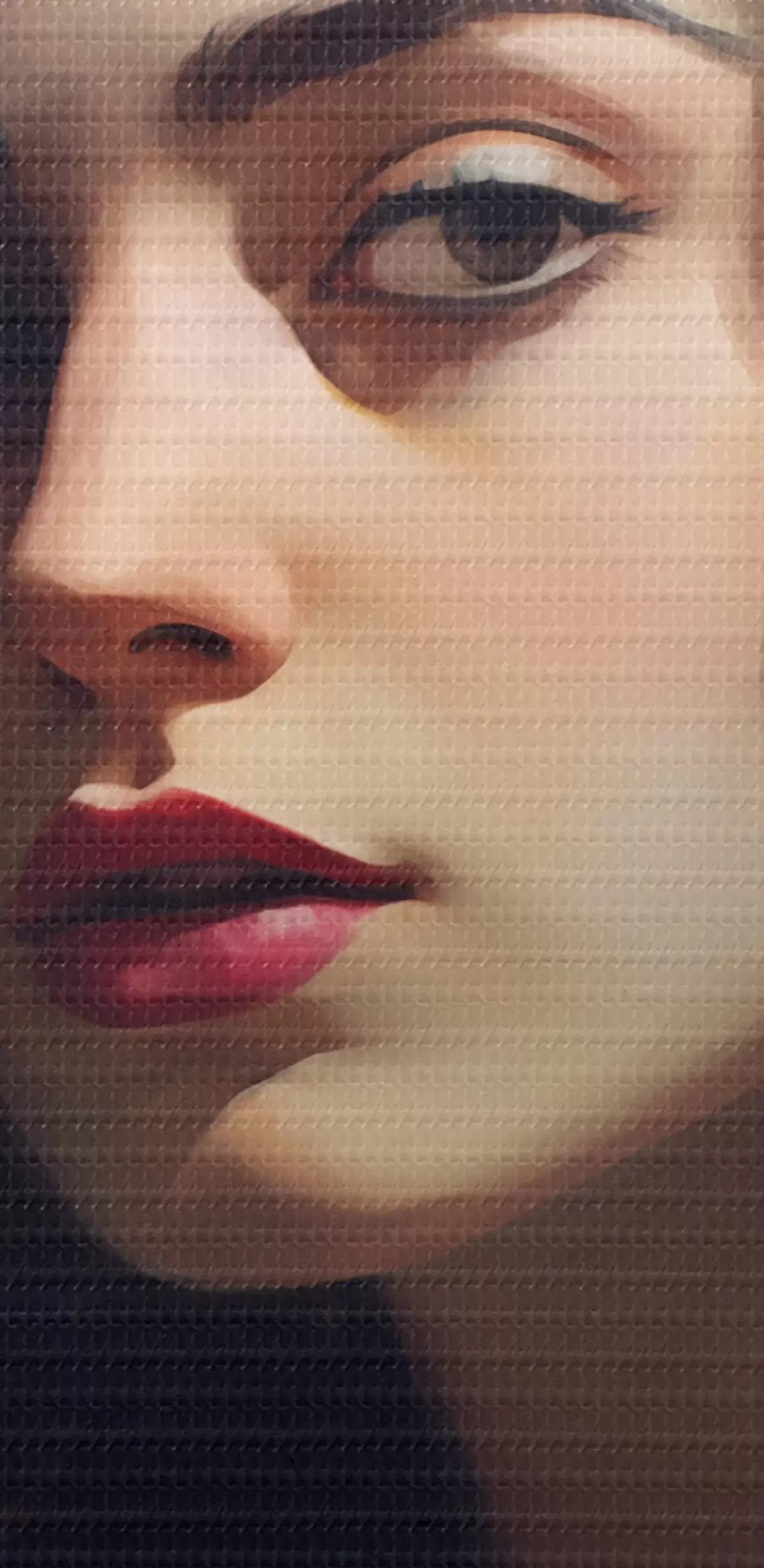 Țesătura fină a firelor de pe această pânză seamănă cu suprafața pânzelor artiștilor profesioniști.