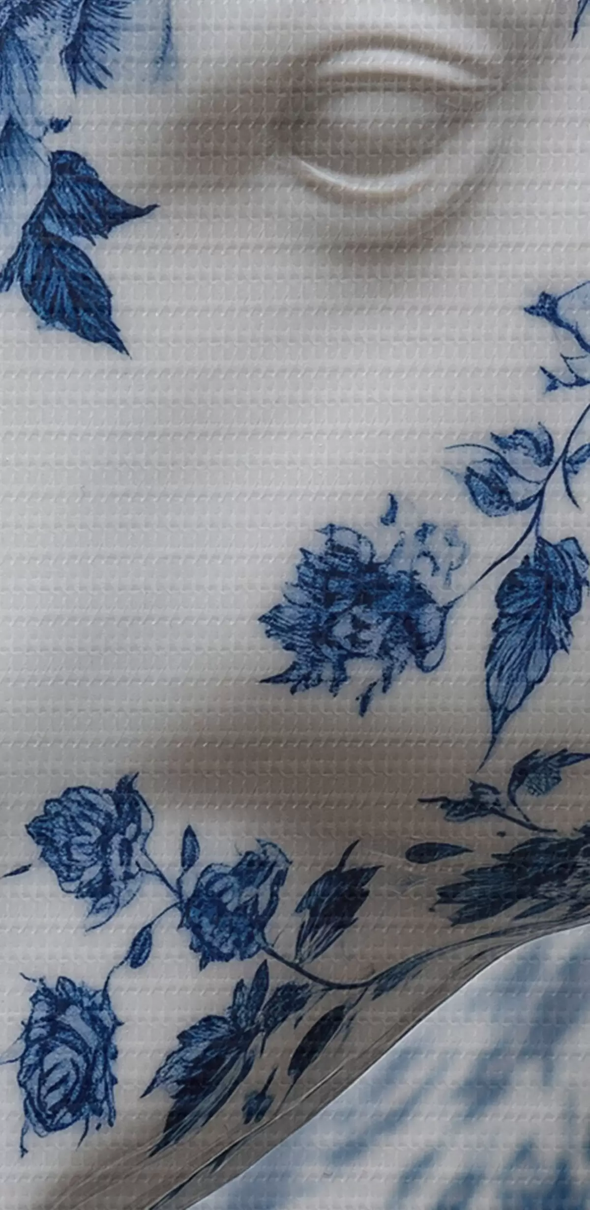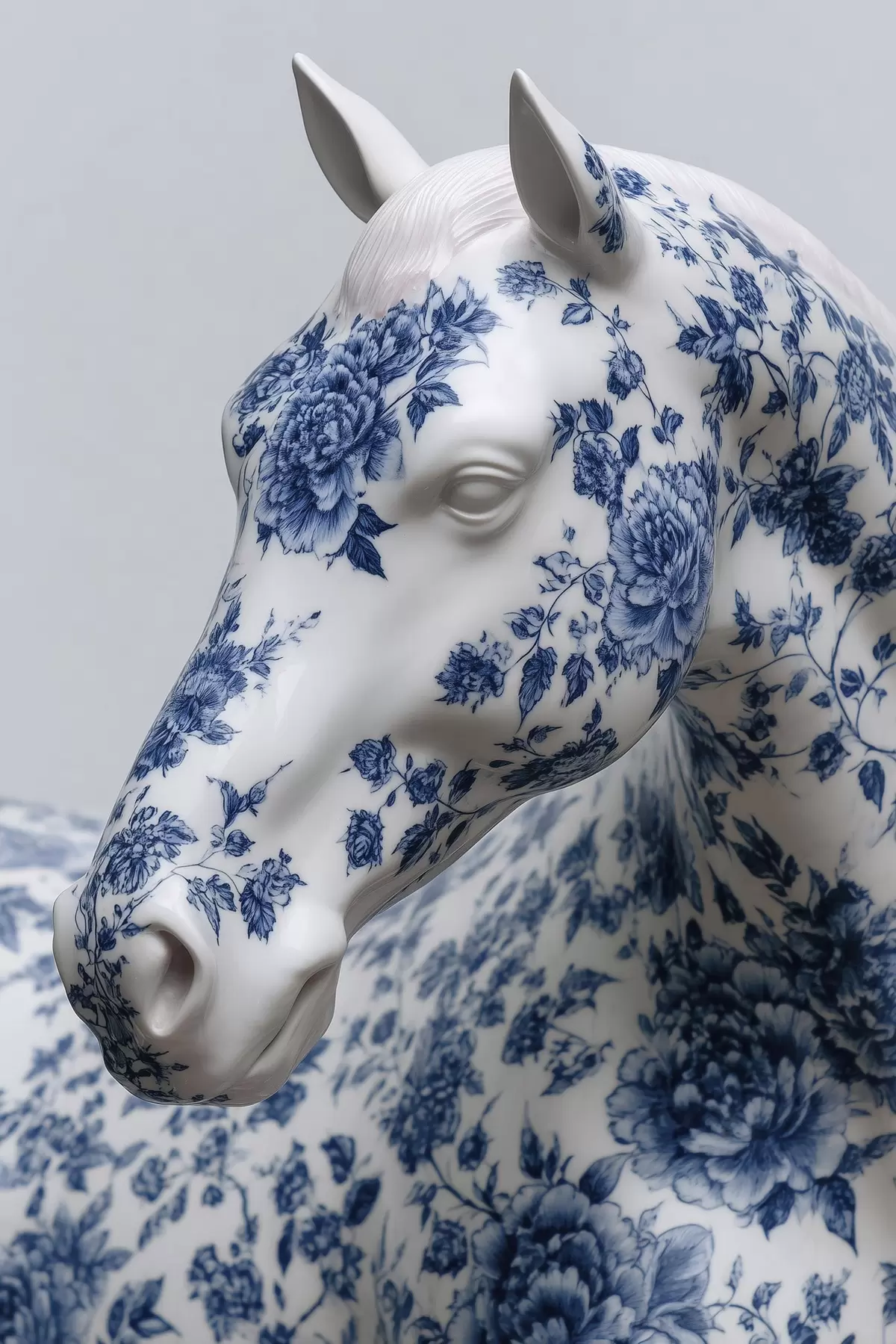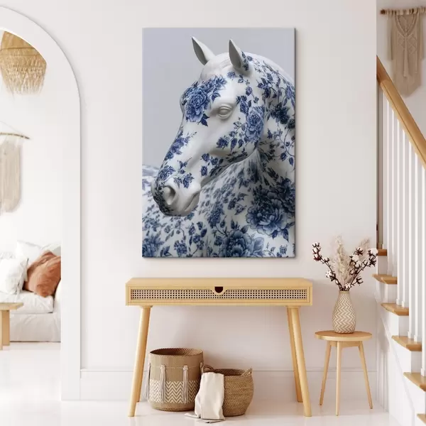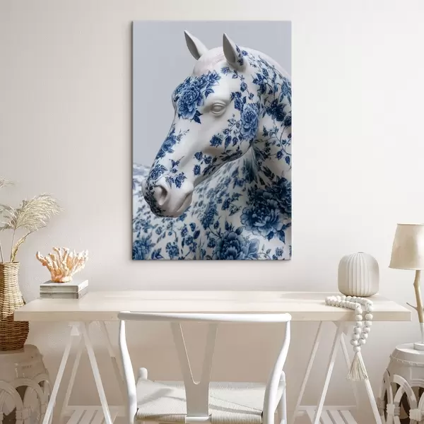 Pictură pe pânză Cal de porțelan cu imprimare de flori albastre Nr s44789