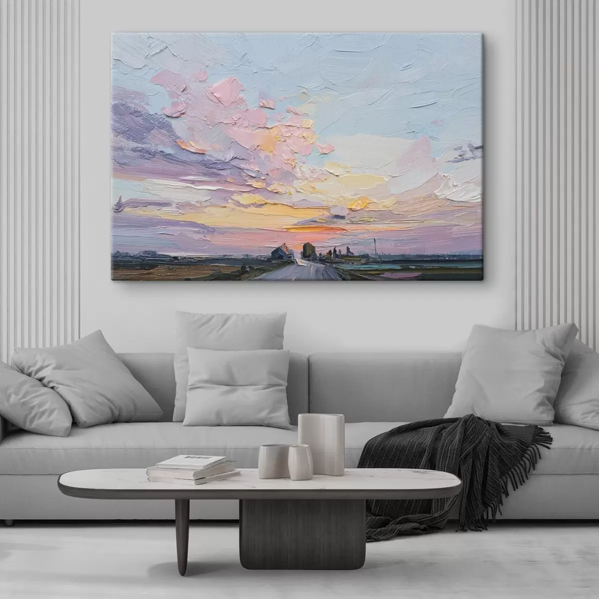 Pictură pe pânză Peisaje rurale în stilul ulei desen, apus de soare Nr s44794