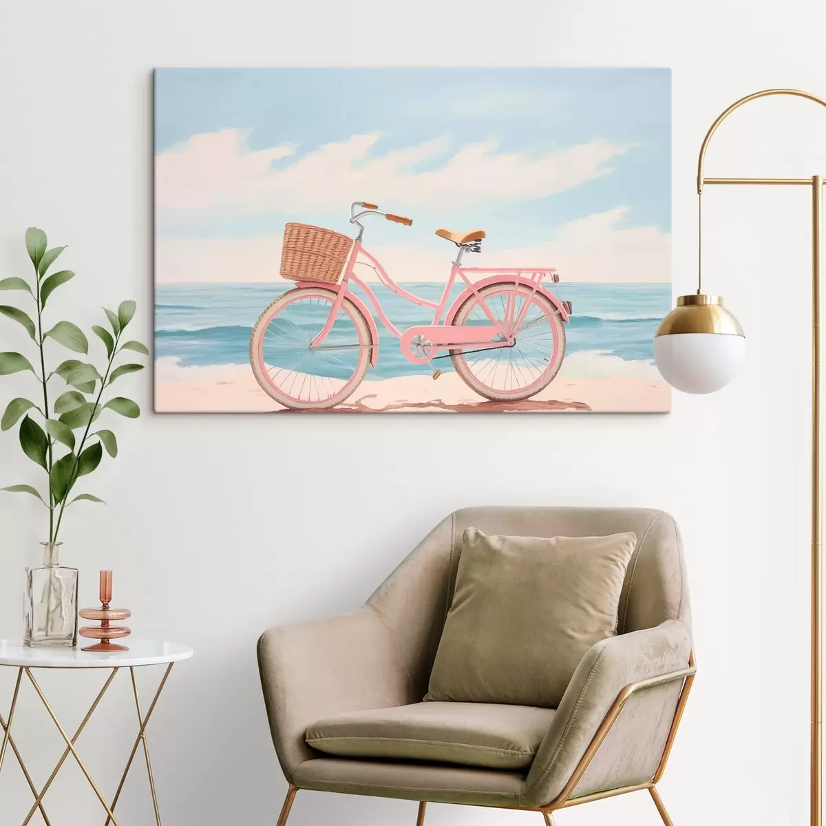 Pictură pe pânză Bicicletă roz pe plajă Nr s44808