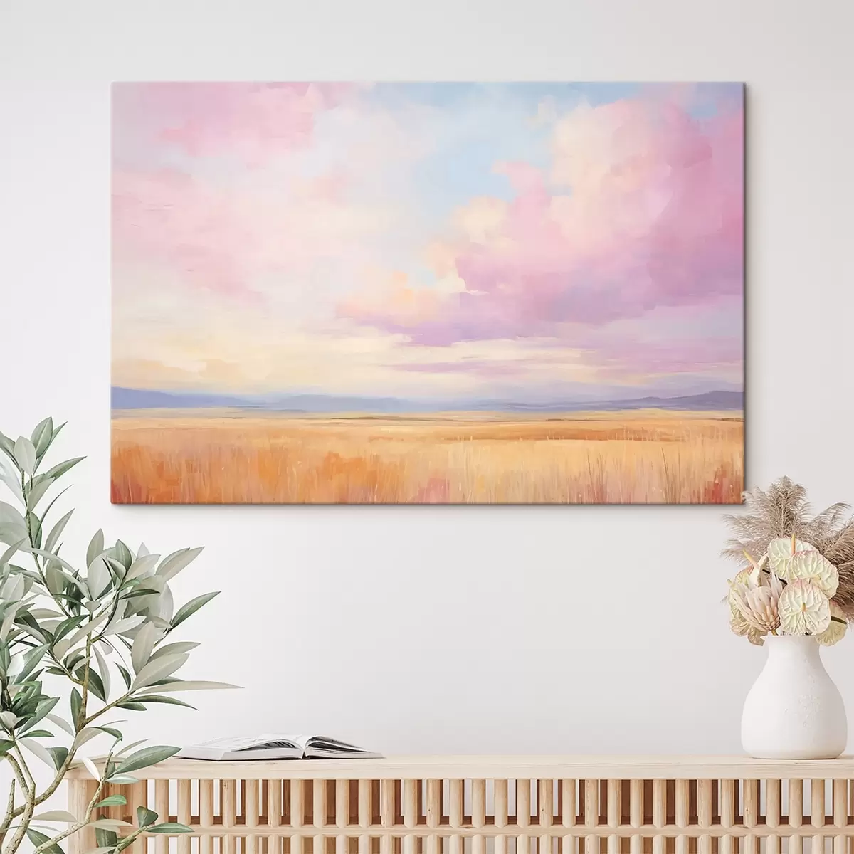 Pictură pe pânză Cer roz peste un câmp Nr s44810