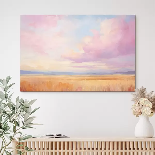 Pictură pe pânză Cer roz peste un câmp Nr s44810