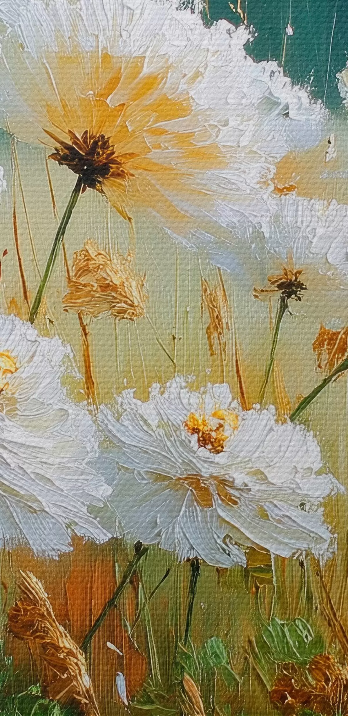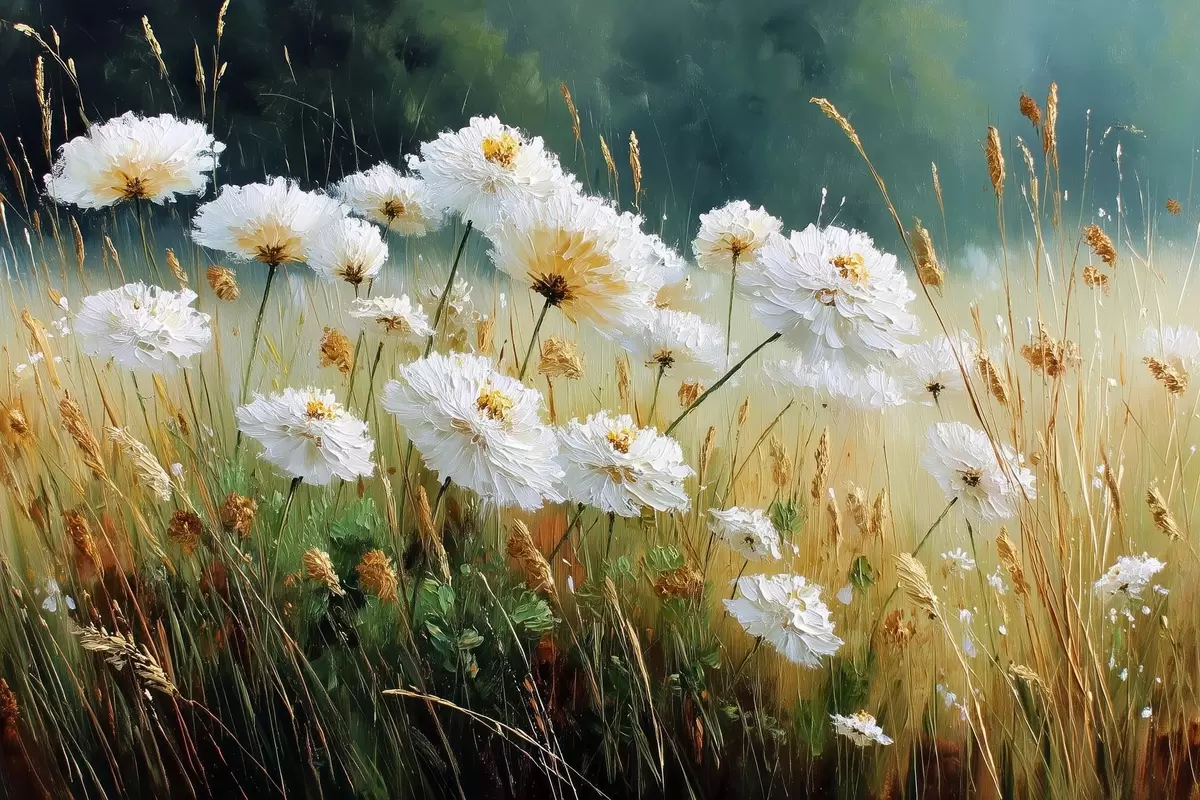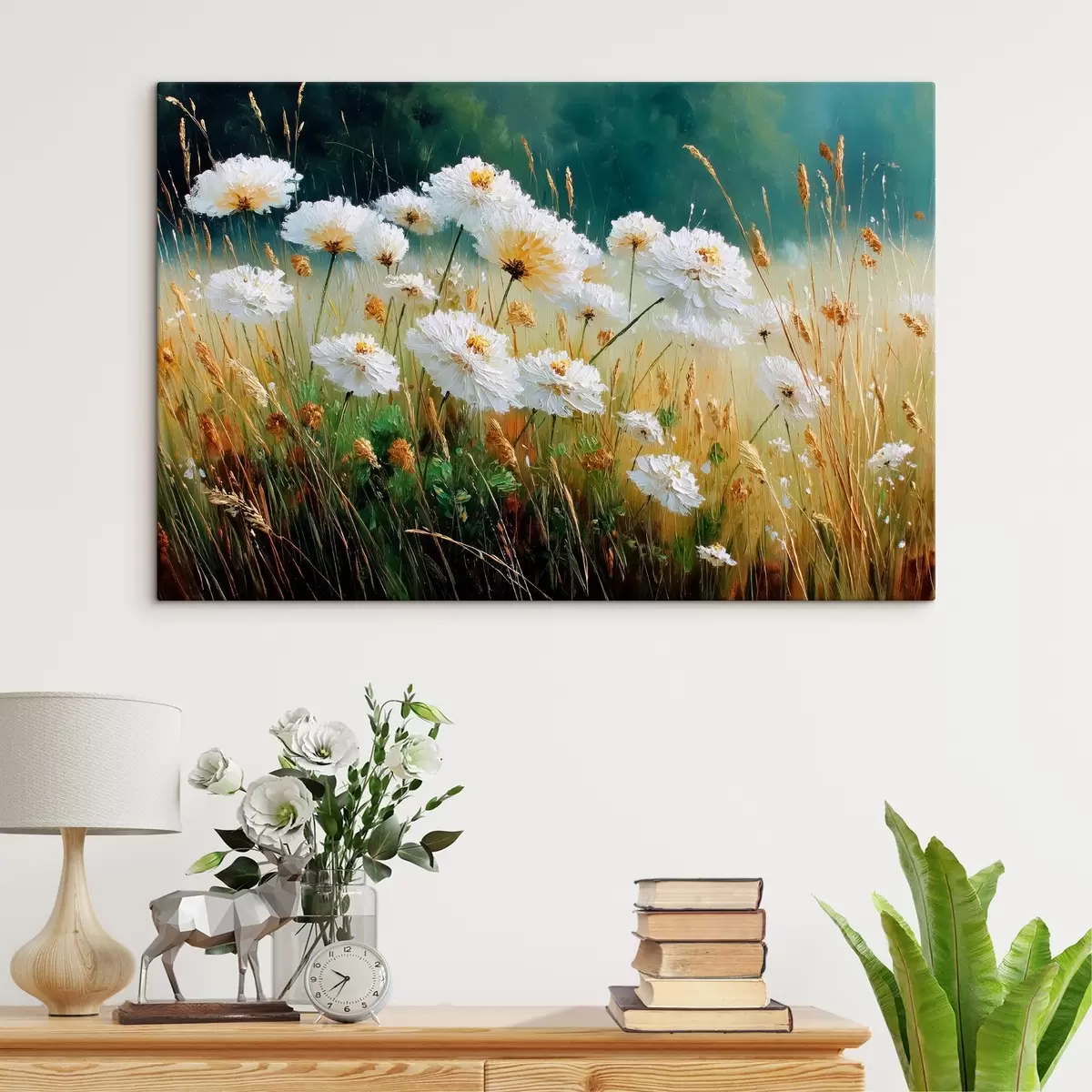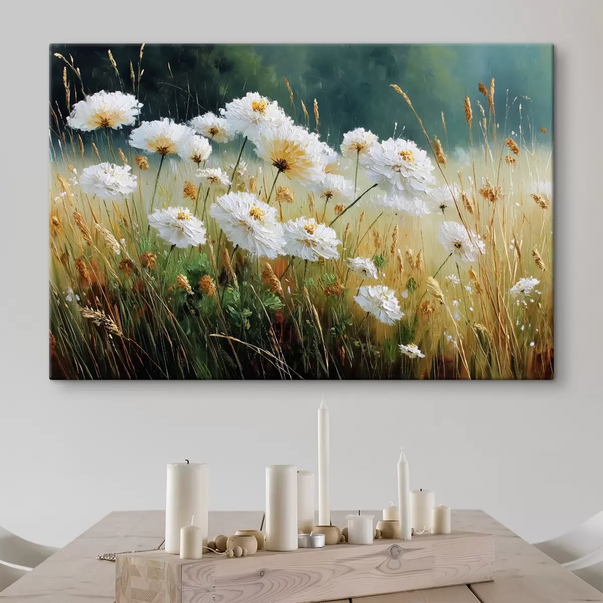 Tablouri Flori albe într-o pajiște în stil ulei s44842