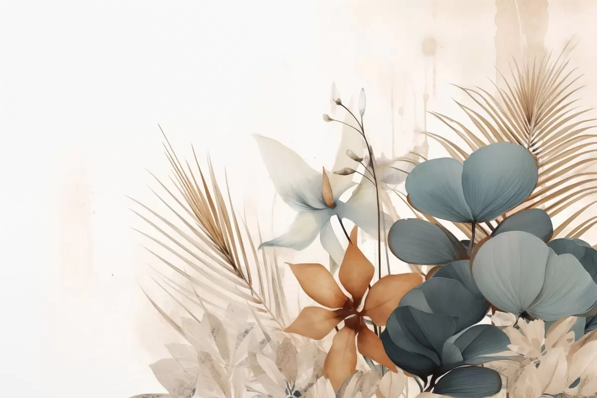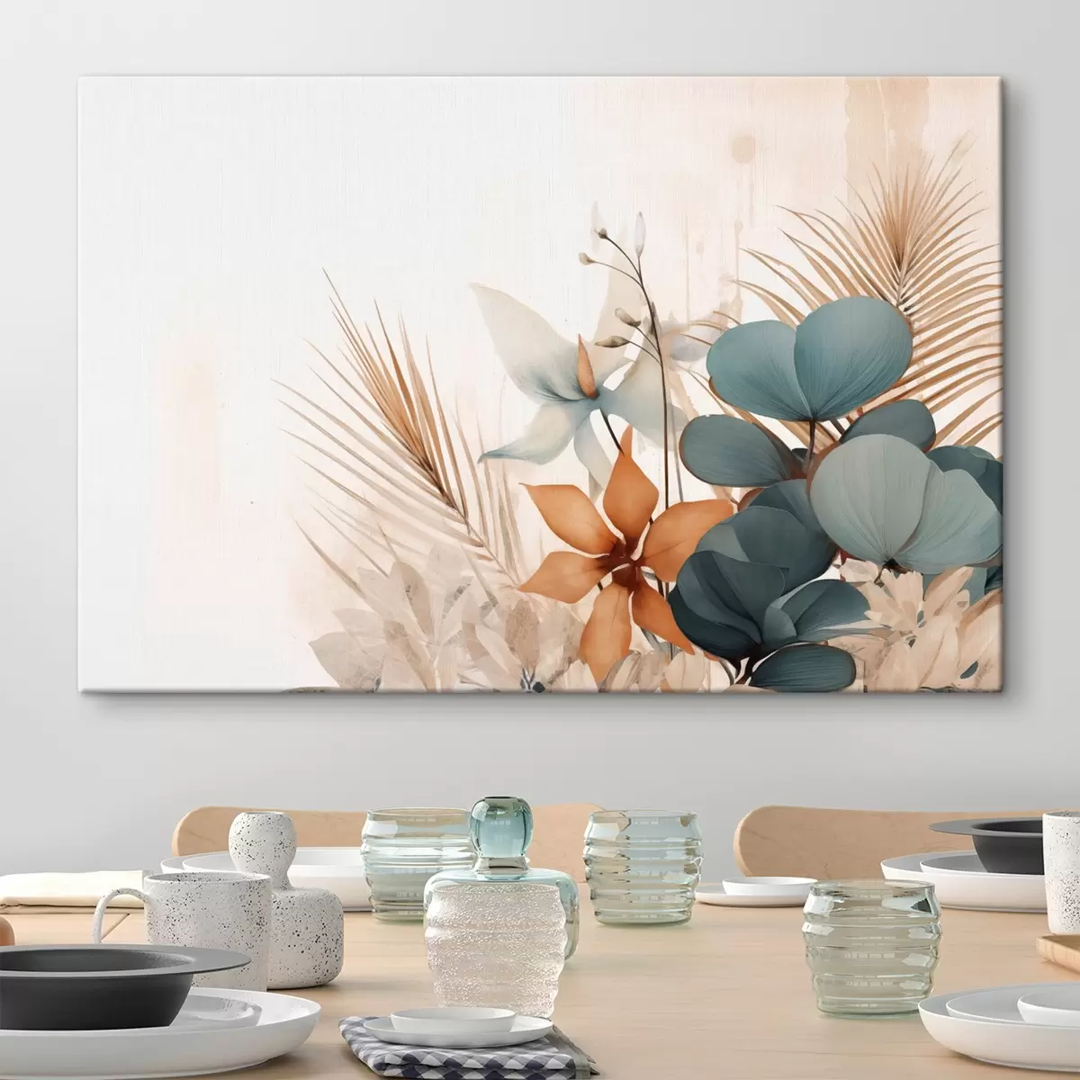 Pictură pe pânză Frunze decorative și flori în stil acuarelă Nr s44843