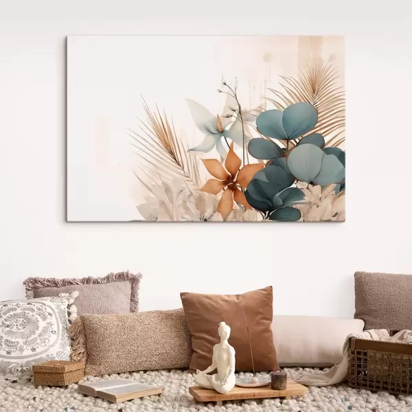 Pictură pe pânză Frunze decorative și flori în stil acuarelă Nr s44843