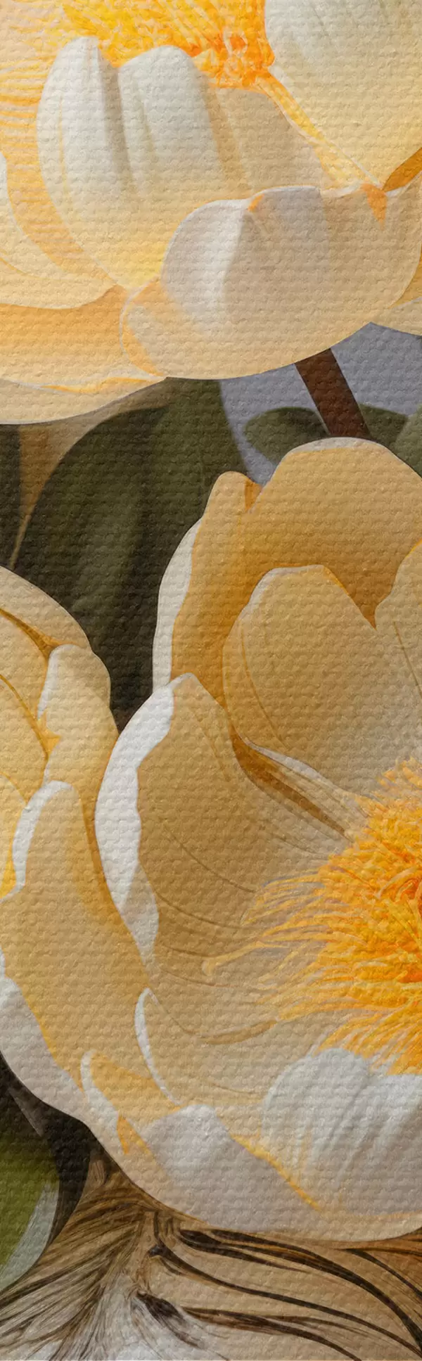 Trei tipuri de materiale sunt disponibile pentru comandă: Economic Canvas - un material dens și durabil pentru imprimarea digitală, identic cu pânza de pictor, suprafață impermeabilă, reproducere realistă a detaliilor, material cu granulație medie. Premium Canvas - textura seamănă cu cea a pânzei unui pictor (fire mici împletite). Reproducere moale, detaliată a imaginii pe o suprafață mată. Eco-Premium - țesătură 100% bumbac de înaltă calitate. Datorită fibrelor naturale de bumbac, materialul este durabil și rezistent la uzură. Reproducere excelentă a culorilor și a detaliilor.