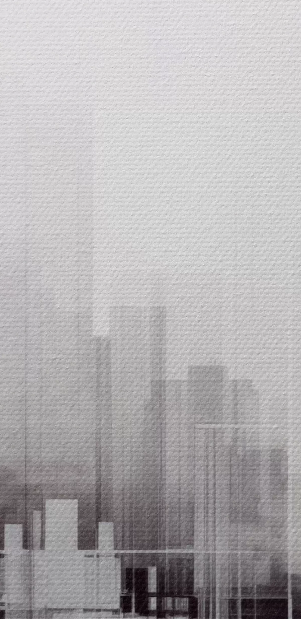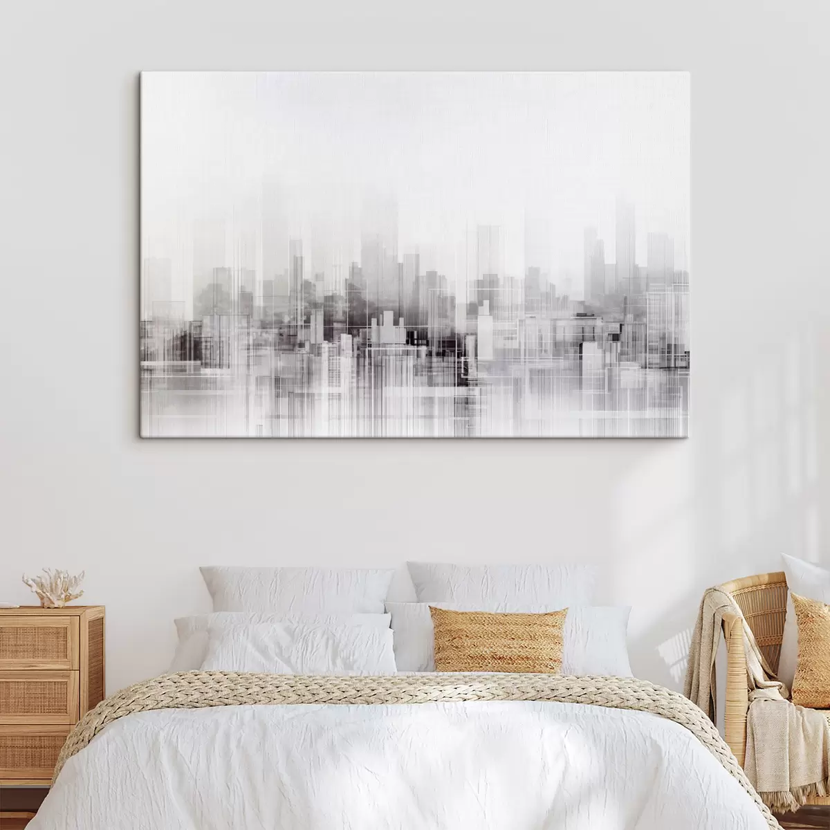 Pictură pe pânză Peisaj urban minimalist texturat cu clădiri înalte și zgârie-nori, profilate pe un cer alb Nr s44863
