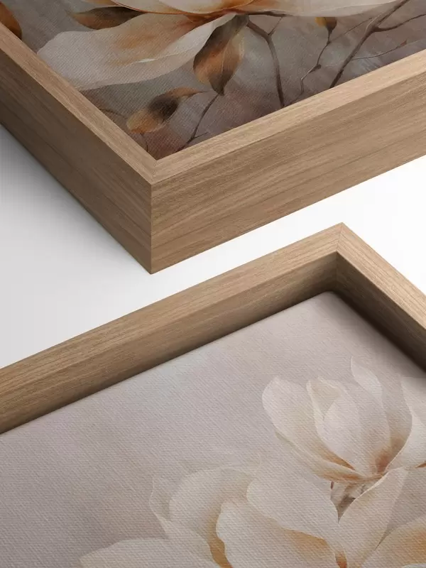 Tablouri Flori de magnolie albe de epocă texturate pe ramuri pe un fundal maro deschis s44869
