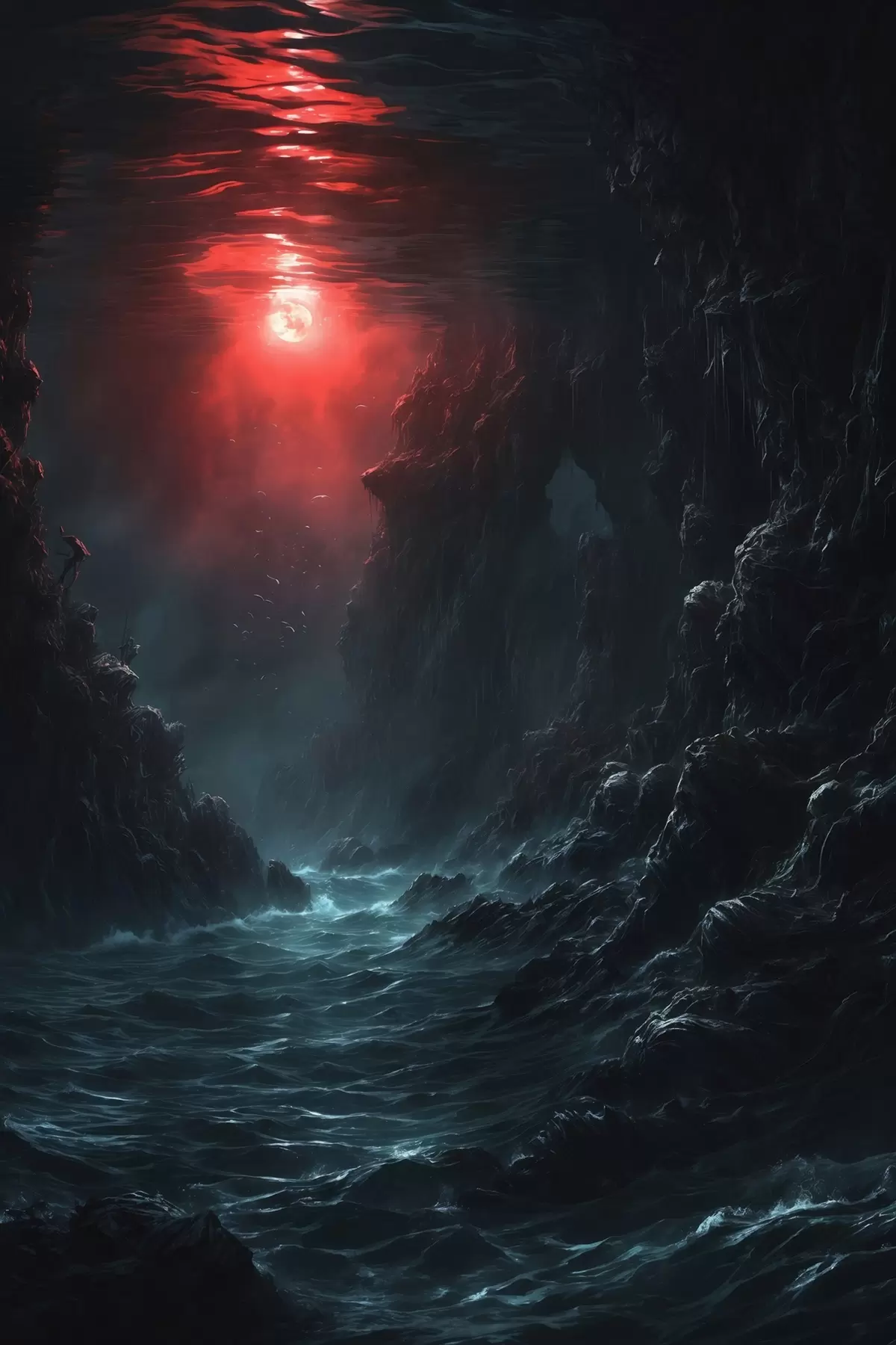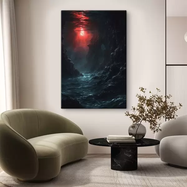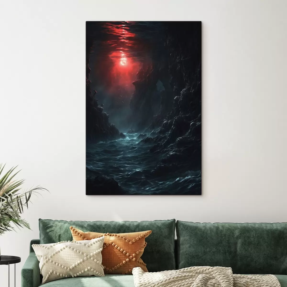 Pictură pe pânză Defileu marin întunecat cu lumină roșie de sus Nr s44870