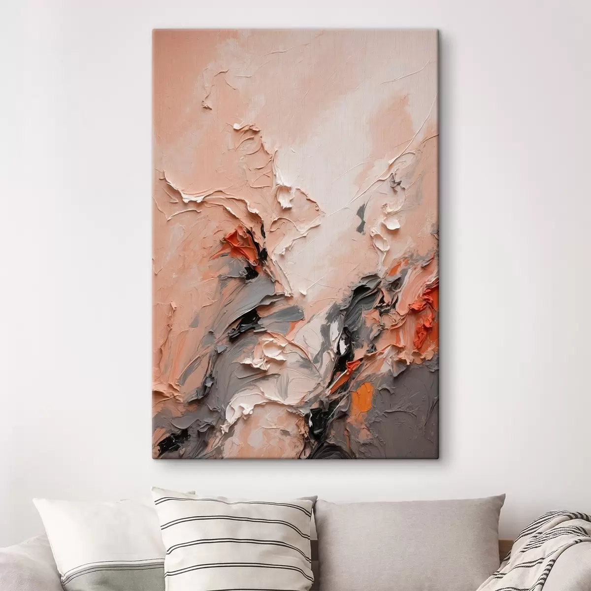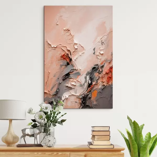 Pictură pe pânză Abstract în tonuri de gri piersică cu tușe texturate Nr s44873