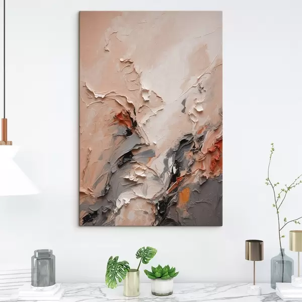 Pictură pe pânză Abstract în tonuri de gri piersică cu tușe texturate Nr s44873