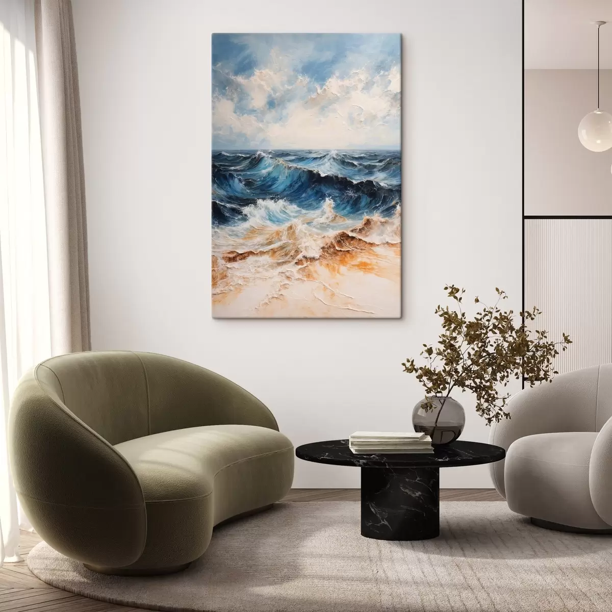 Pictură pe pânză Mare agitată cu valuri sub un cer senin Nr s44881