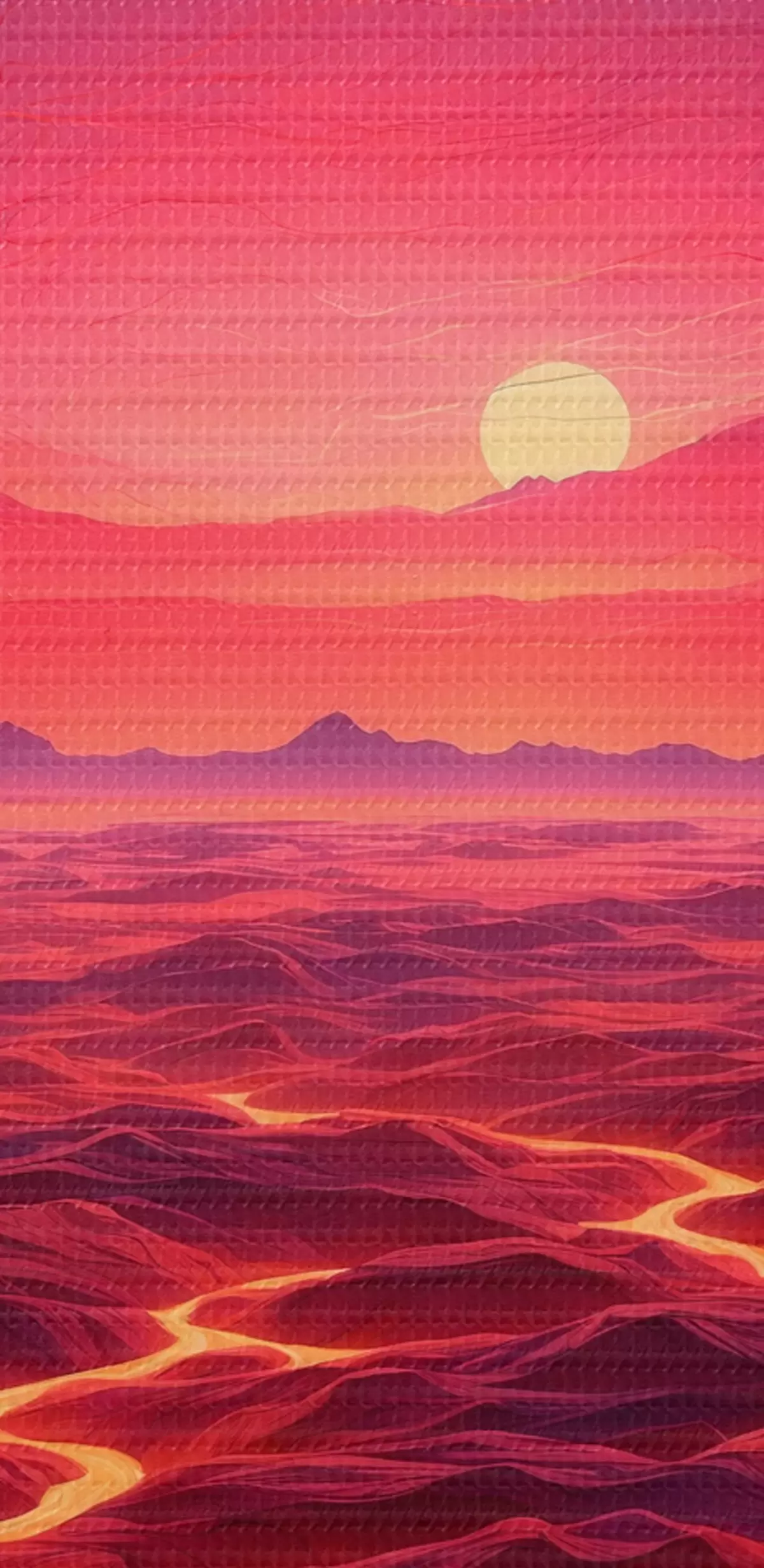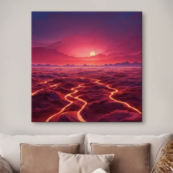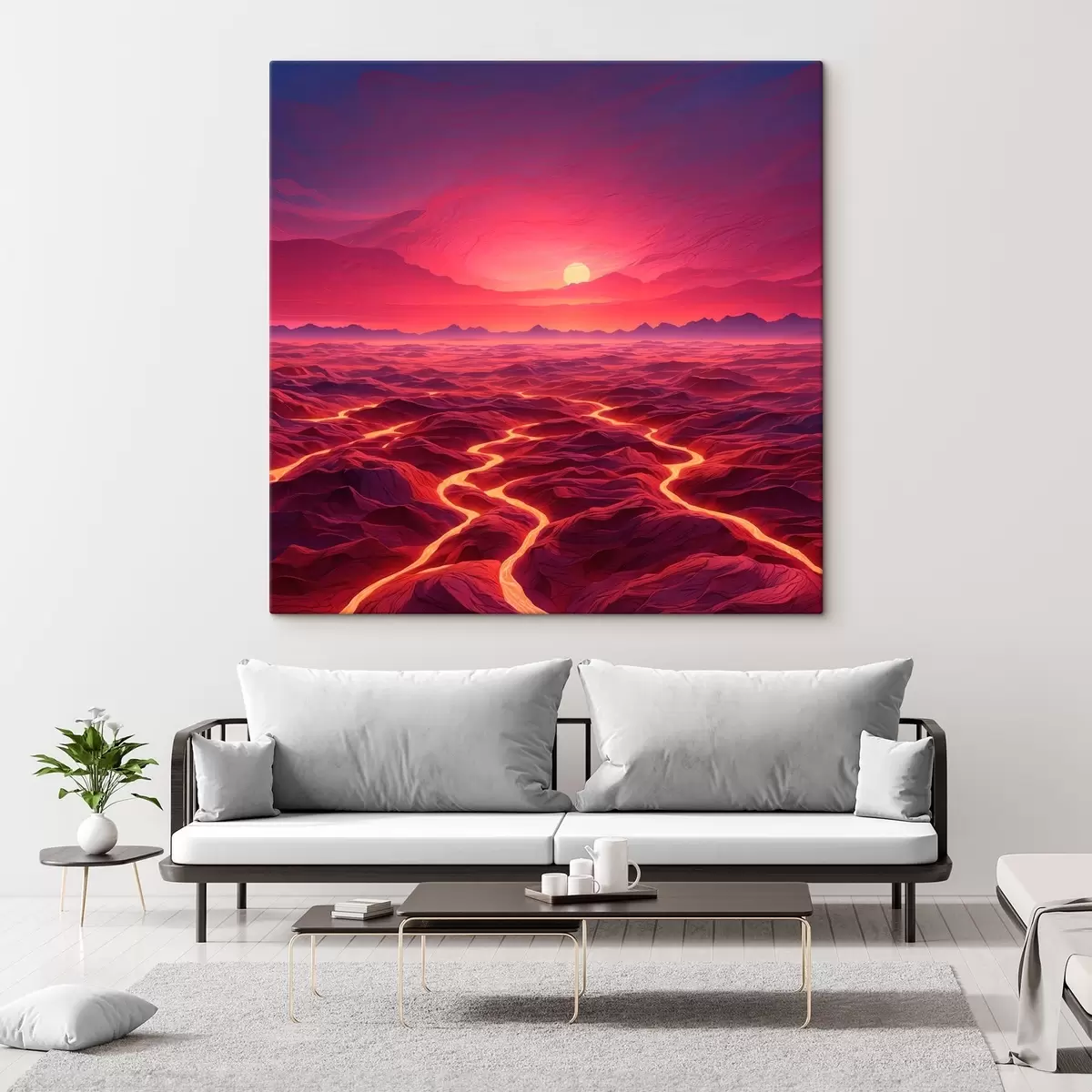 Pictură pe pânză Peisaj fierbinte cu fluxuri de lavă sub un cer roșu Nr s44886