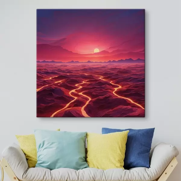 Pictură pe pânză Peisaj fierbinte cu fluxuri de lavă sub un cer roșu Nr s44886