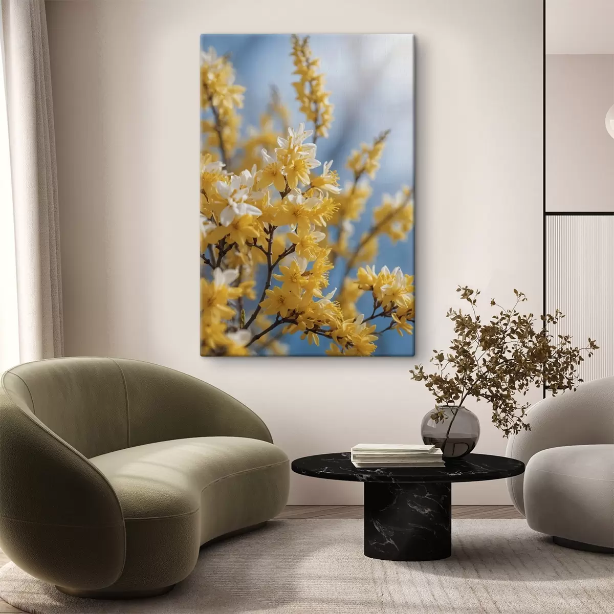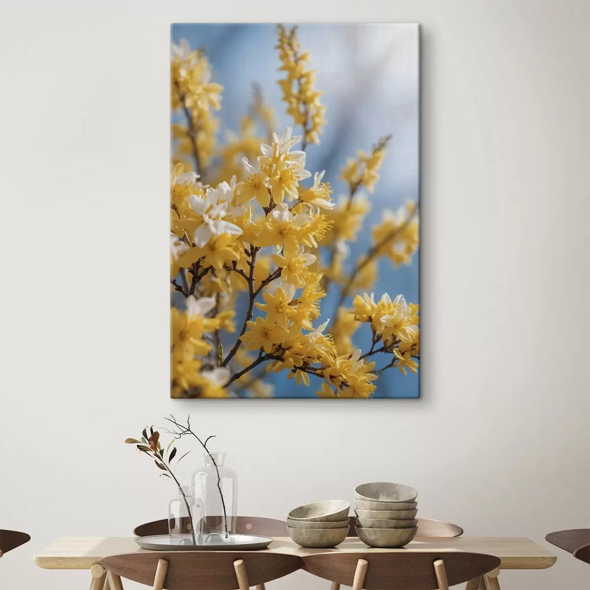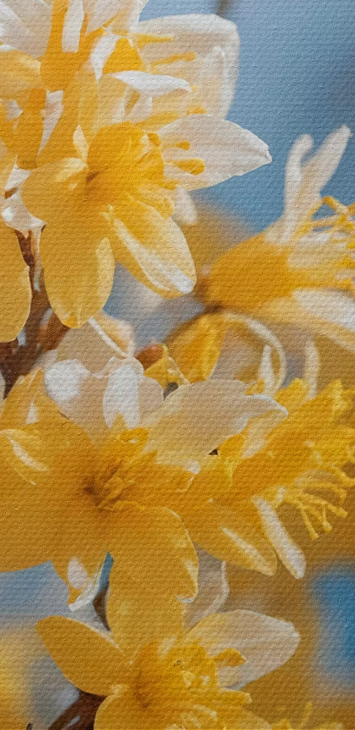 Pictură pe pânză Flori galbene pe un fundal albastru cu focalizare moale Nr s44894