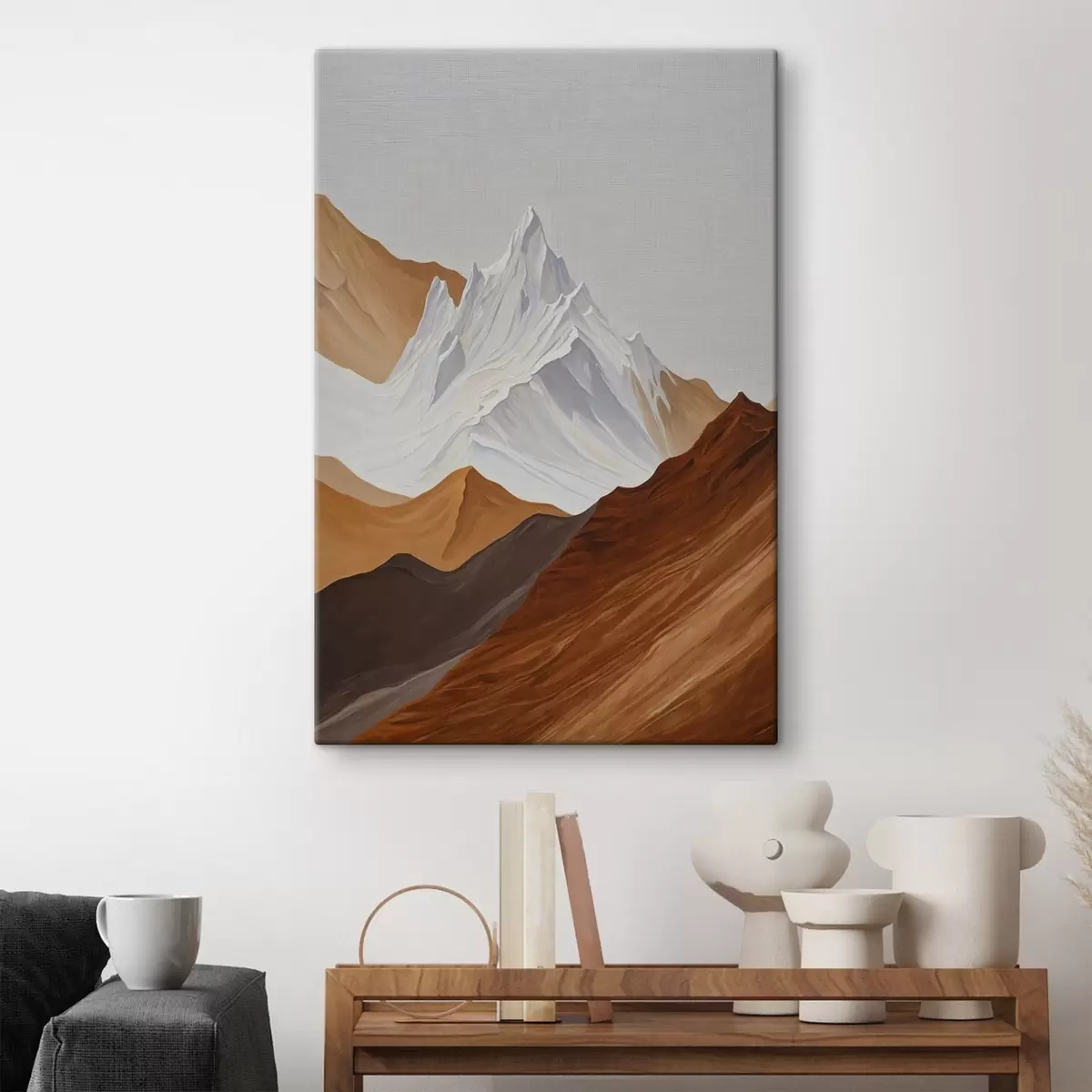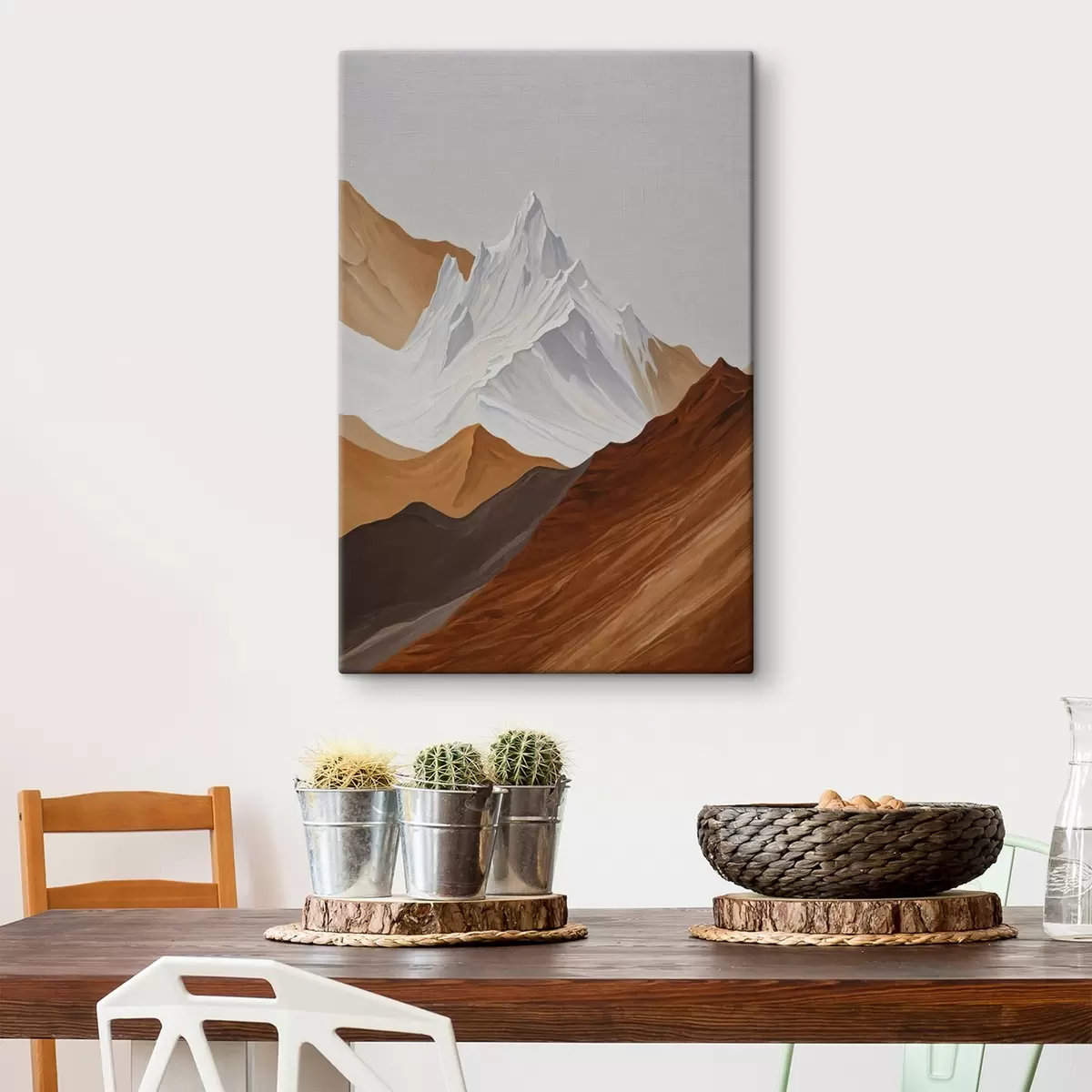 Pictură pe pânză Geometric peisaj montan în tonuri de maro și și alb Nr s44896