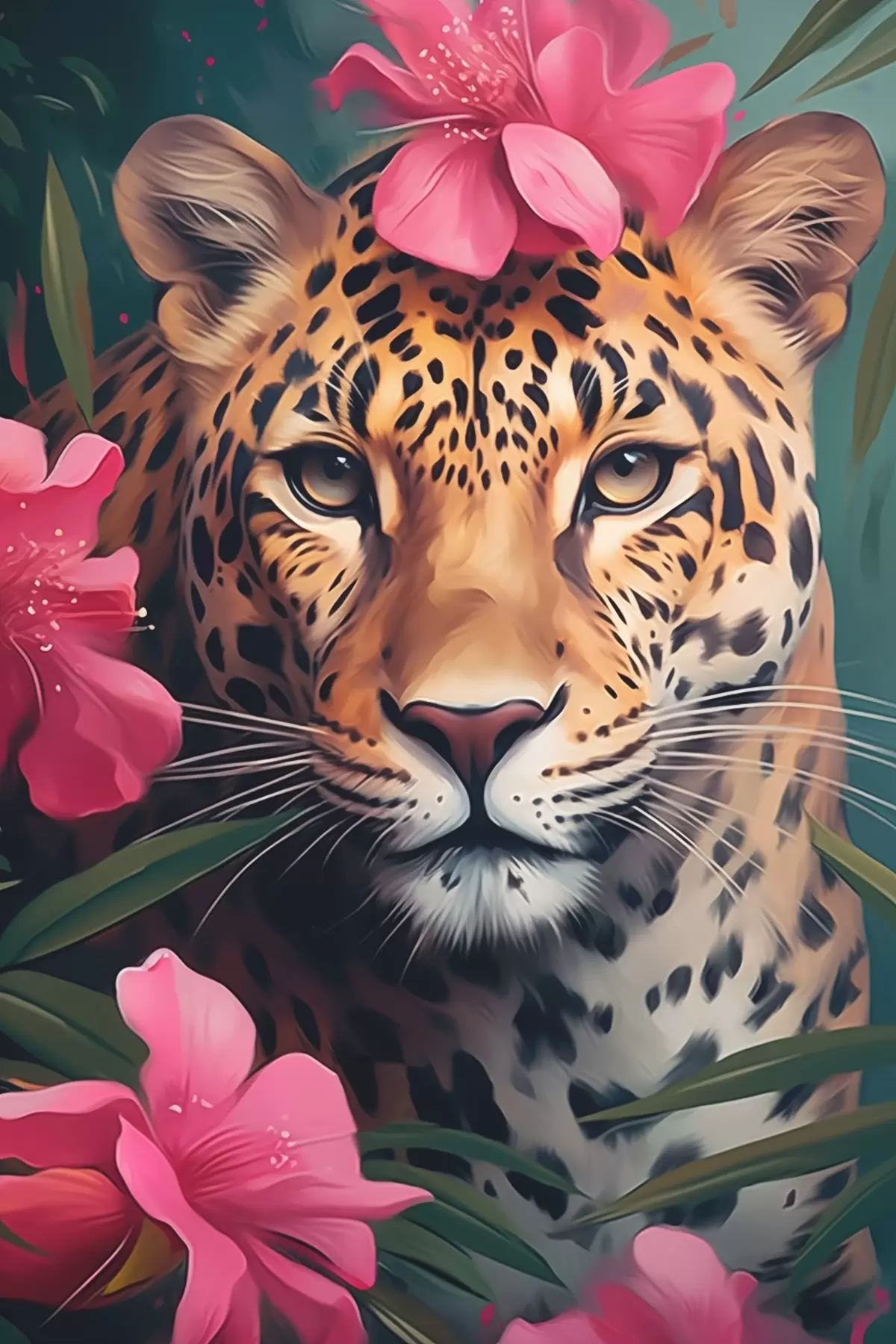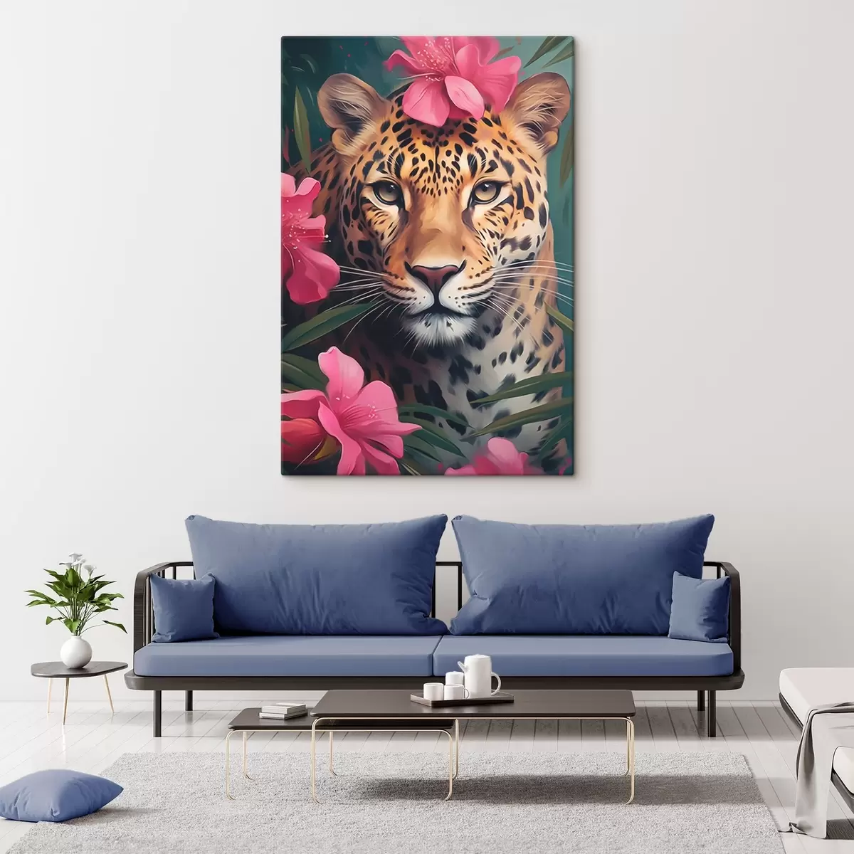 Pictură pe pânză Leopard printre flori tropicale Nr s44918
