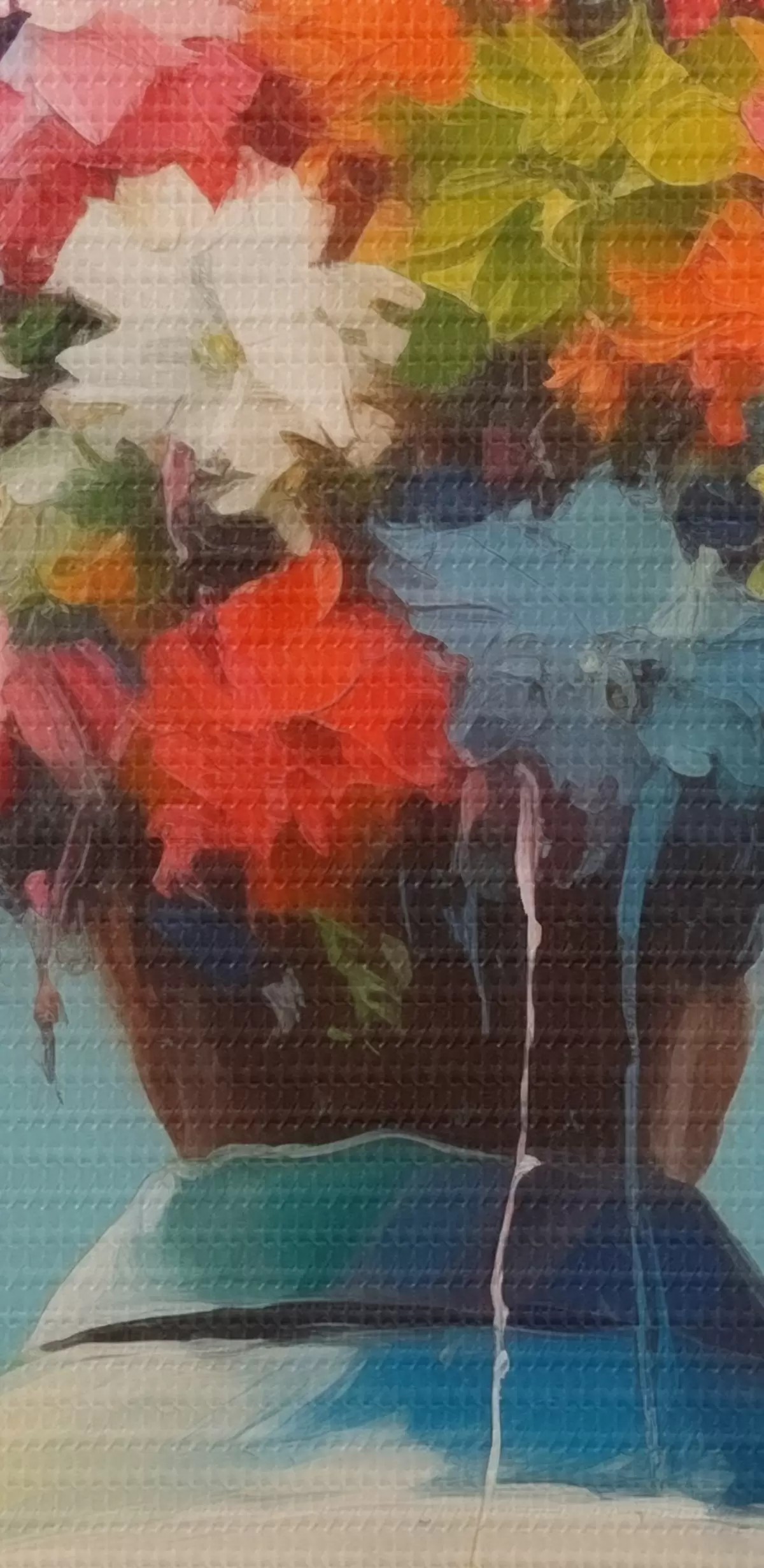 Țesătura fină a firelor de pe această pânză seamănă cu suprafața pânzelor artiștilor profesioniști.