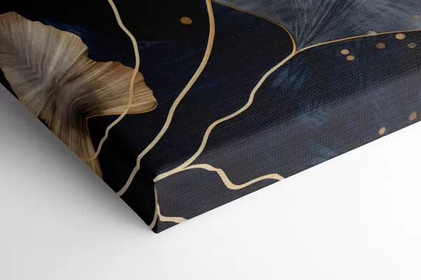 Pictură pe pânză Frunze Ginkgo în tonuri de galben și albastru, fundal întunecat elegant, artă modernă, stil minimalist, inspirat din natură Nr s44921