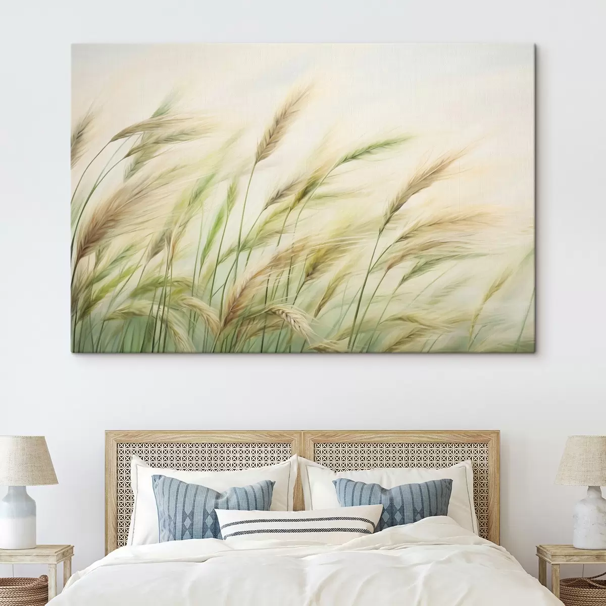 Tablouri Câmp de grâu cu spice de grâu galbene și verzi, tușe moi și o paletă de culori deschise, atmosferă naturală s44923