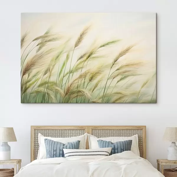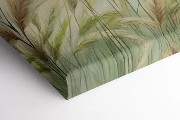 Pictură pe pânză Câmp de grâu cu spice de grâu galbene și verzi, tușe moi și o paletă de culori deschise, atmosferă naturală Nr s44923
