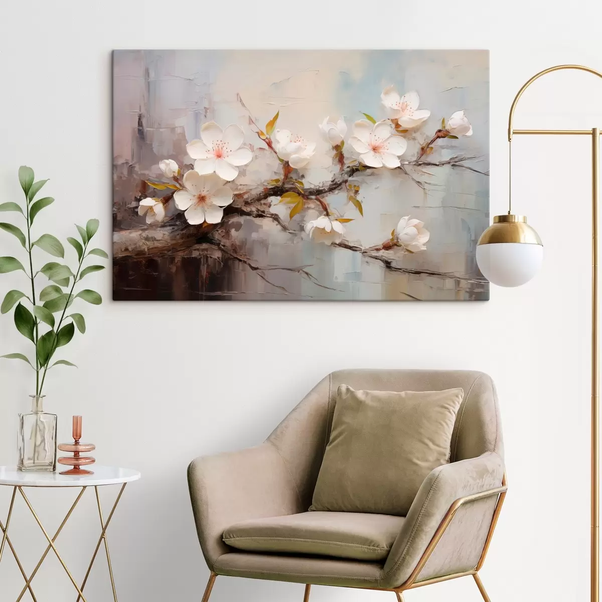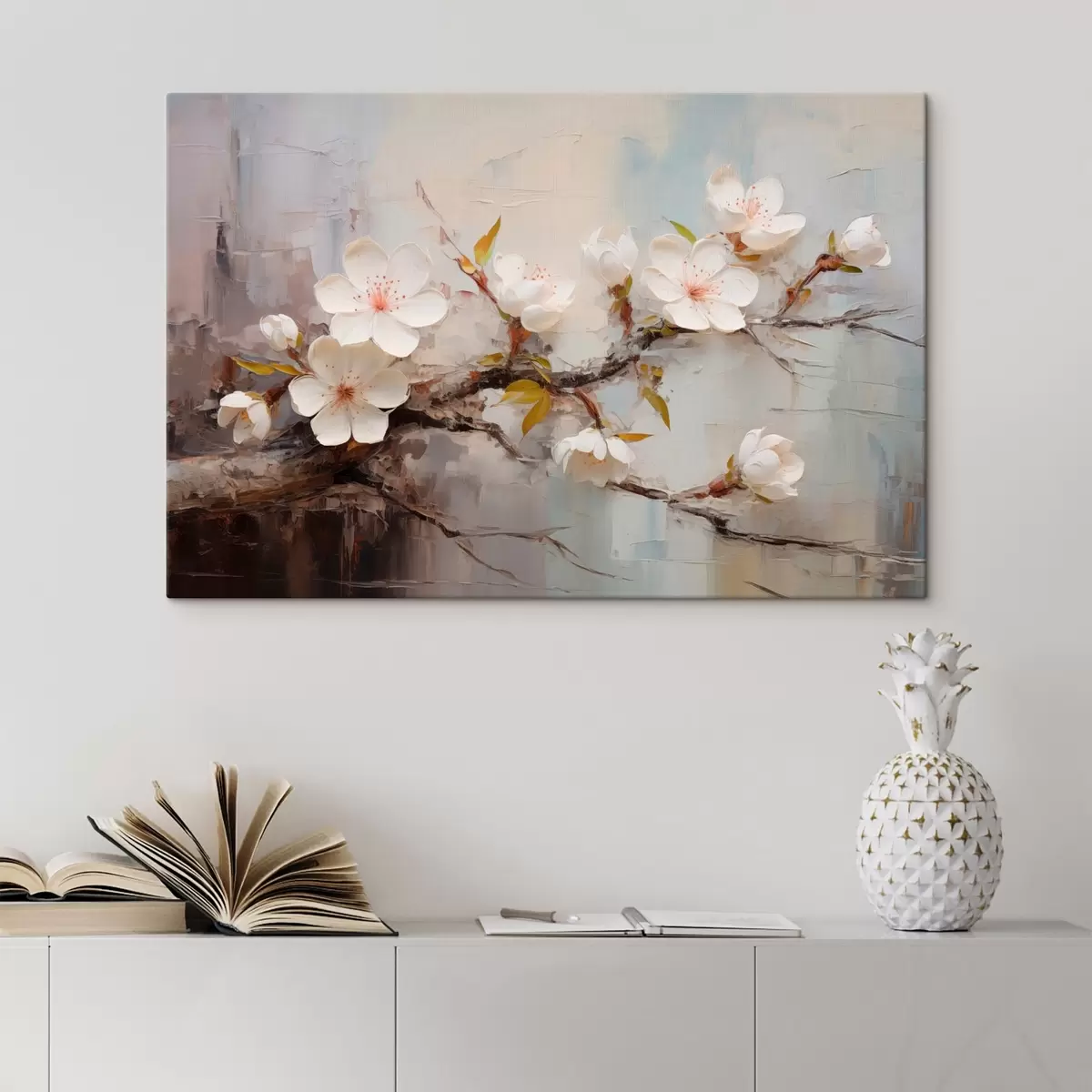 Pictură pe pânză Flori albe cu accente roz pe un fundal abstract Nr s44935