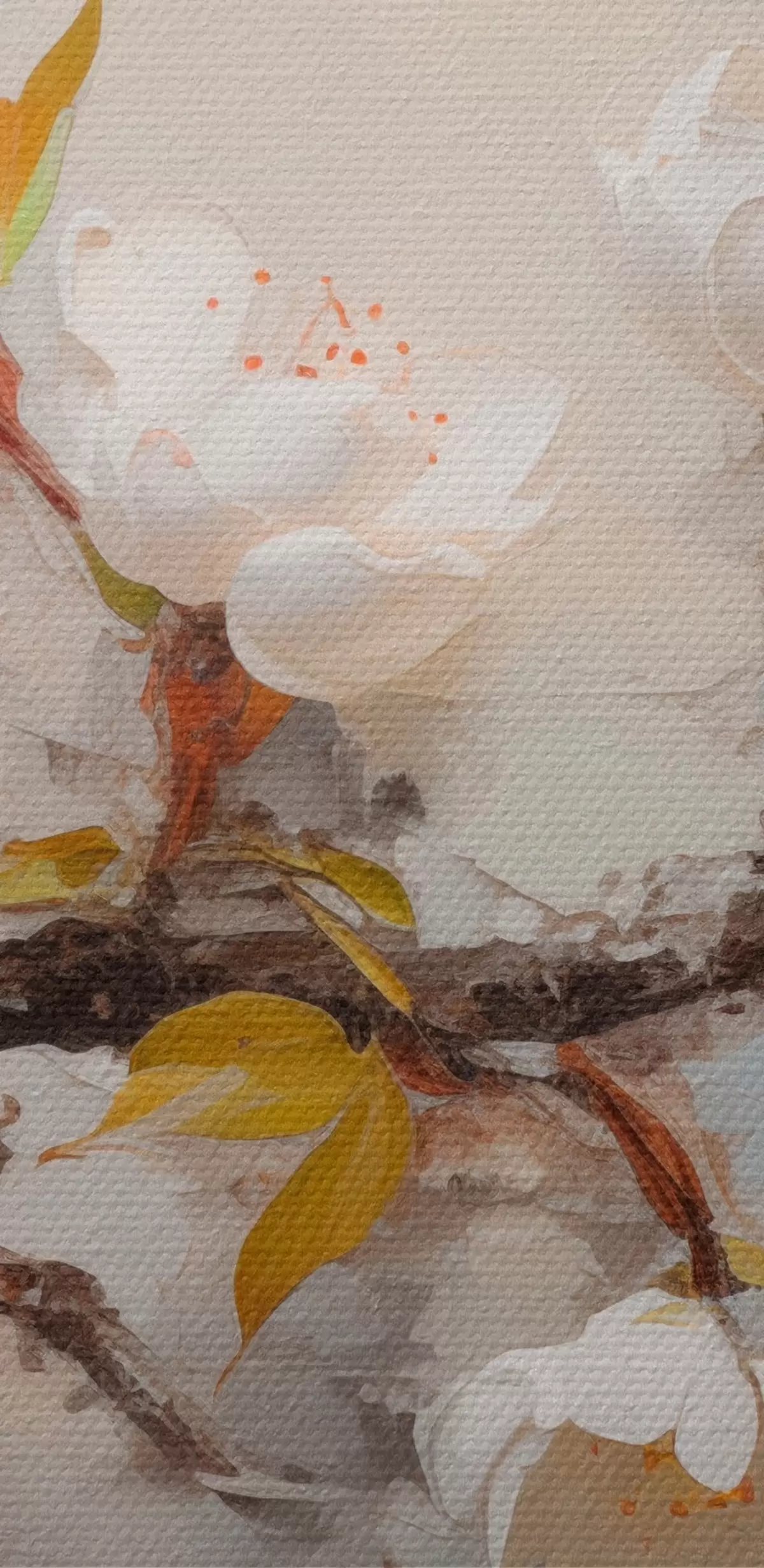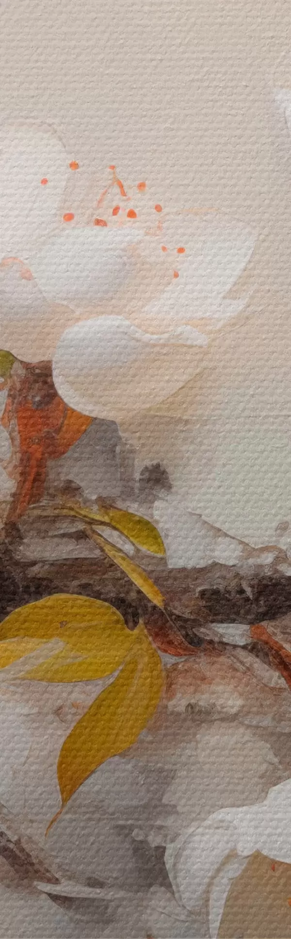 Tablouri Flori albe cu accente roz pe un fundal abstract s44935