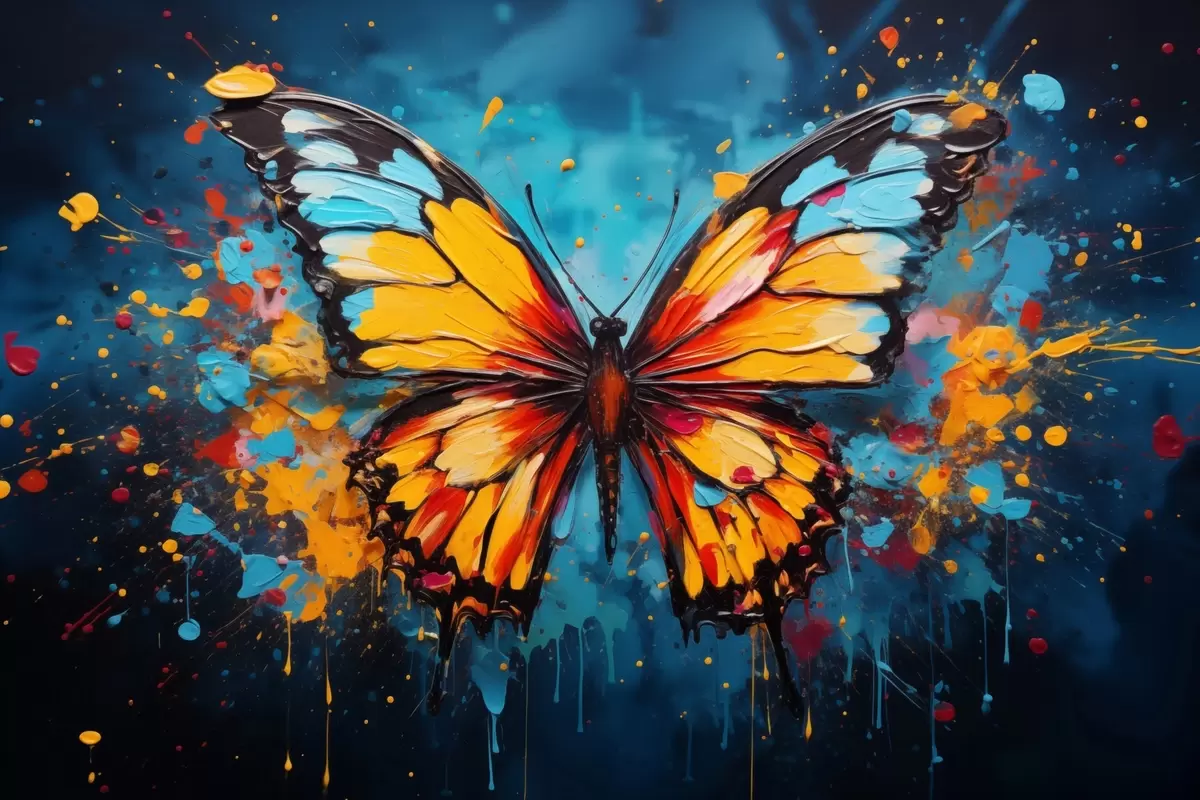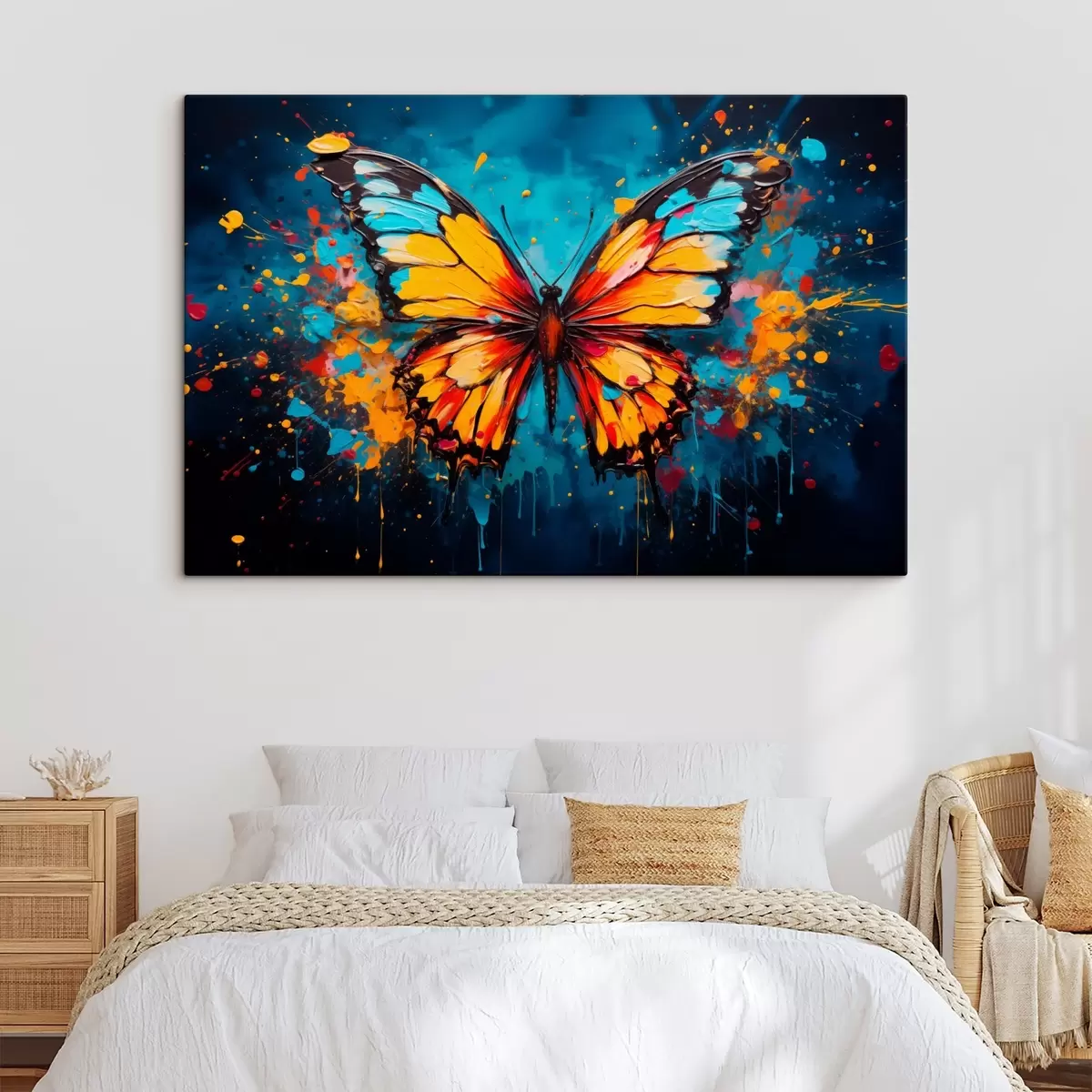 Pictură pe pânză Fluture colorat în stil vopsea splatter Nr s44938
