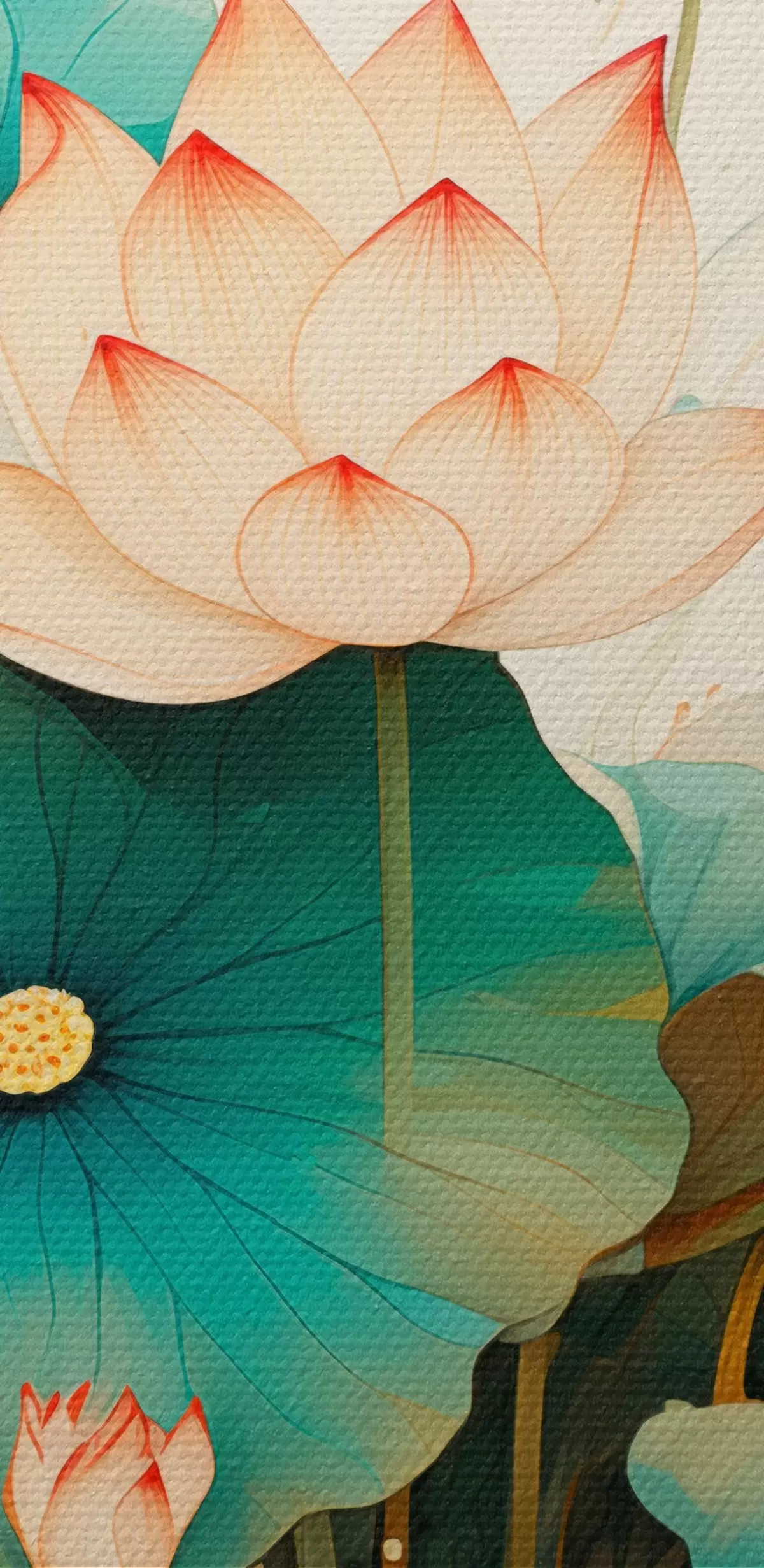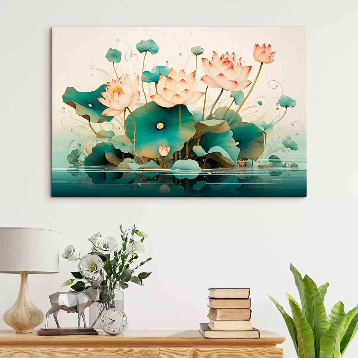 Tablouri Lotus cu frunze mari în stil ilustrație s44939