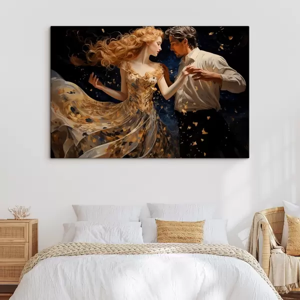 Pictură pe pânză Cuplu în mișcare în tonuri galben-albastru în stil pictură Nr s44940
