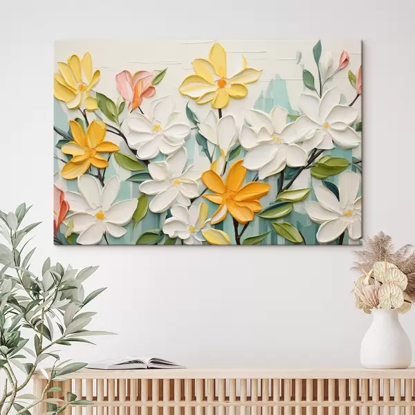 Pictură pe pânză Flori în relief în culori strălucitoare în stil de imitație brushstroke Nr s44942